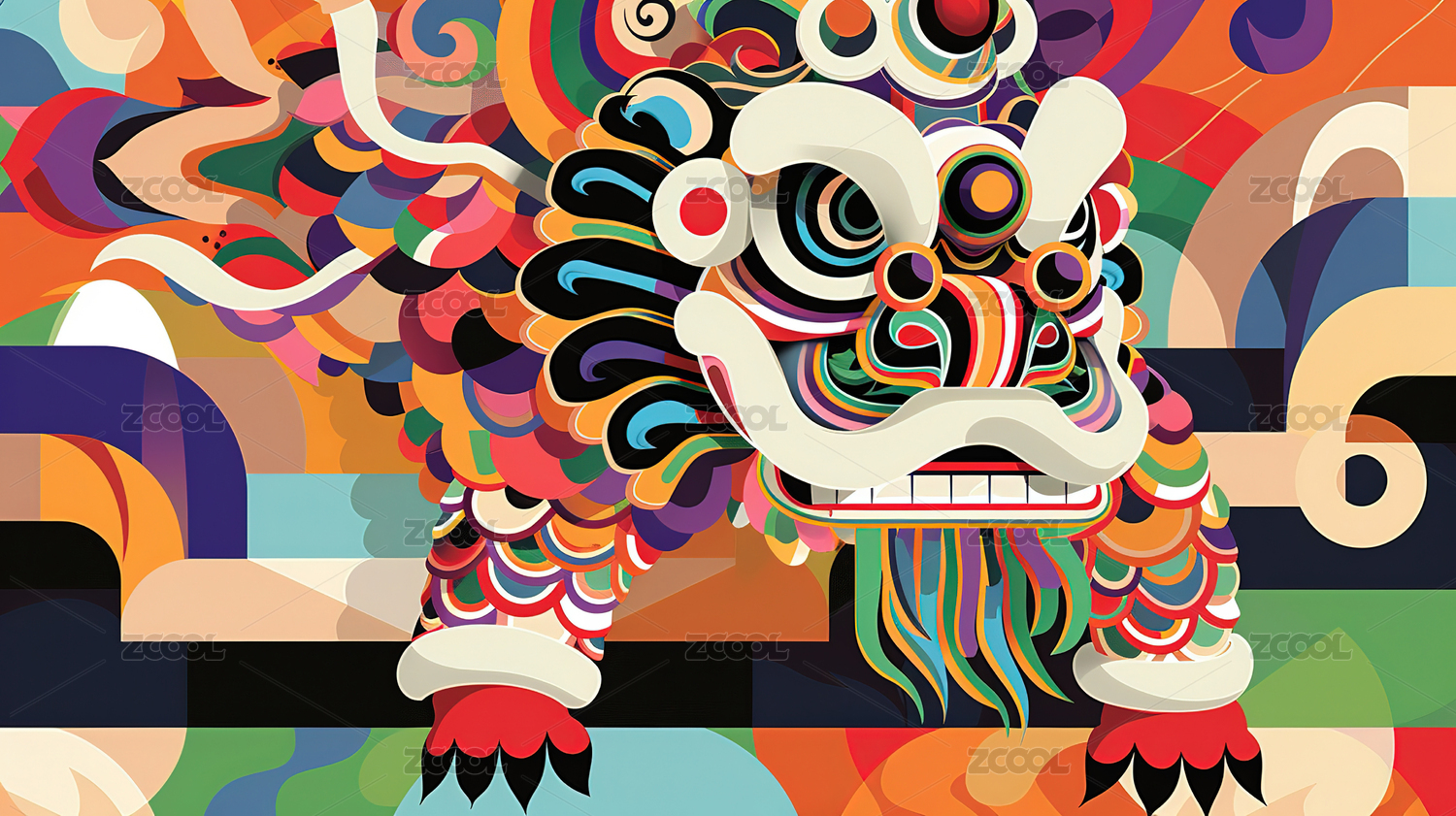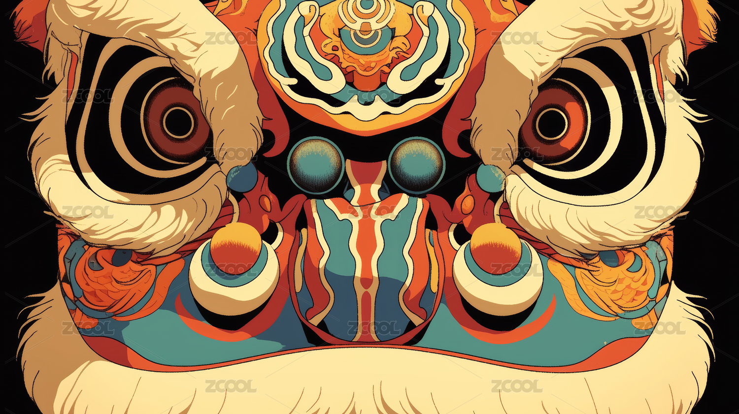 舞狮头部艺术图案