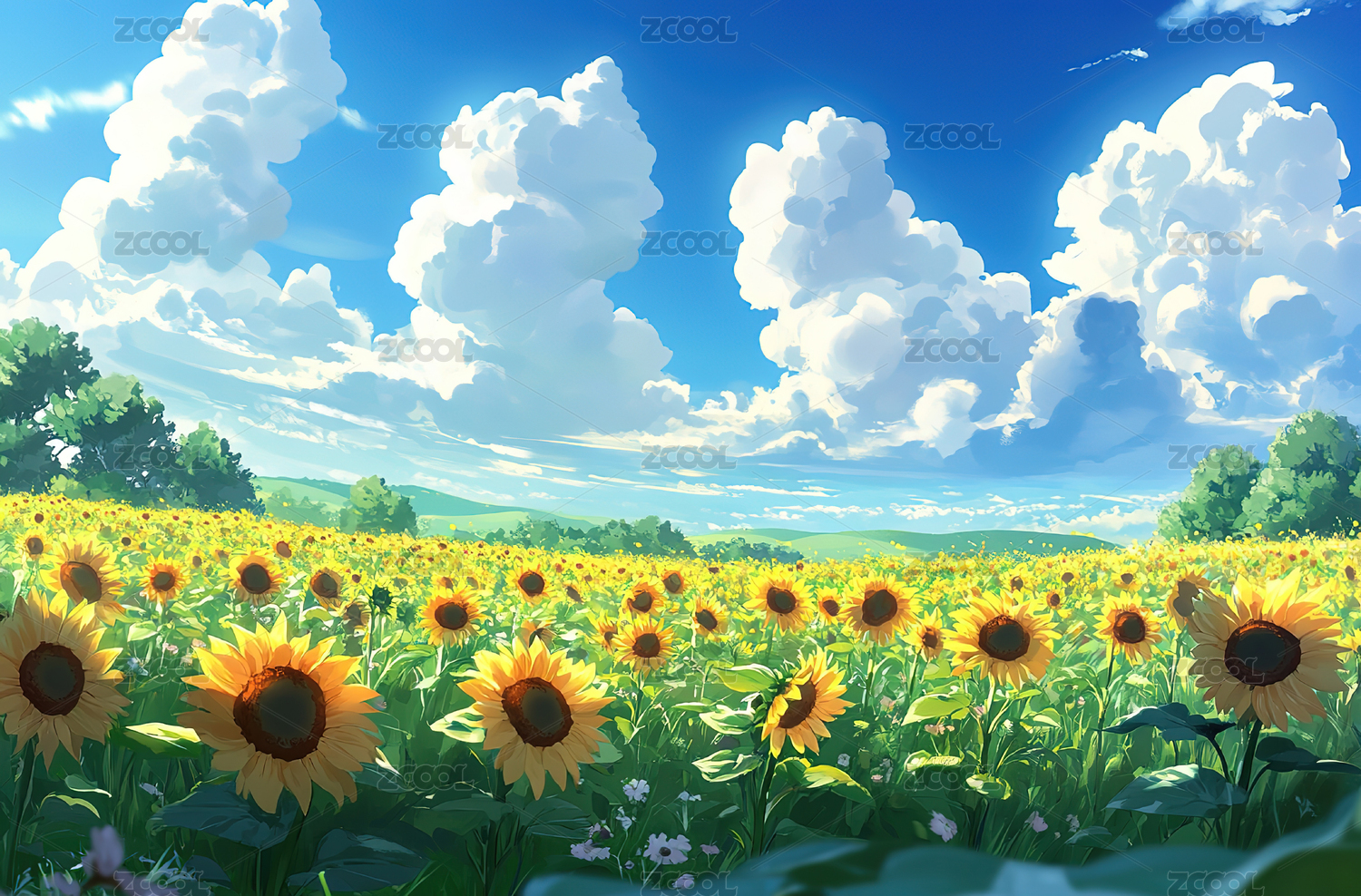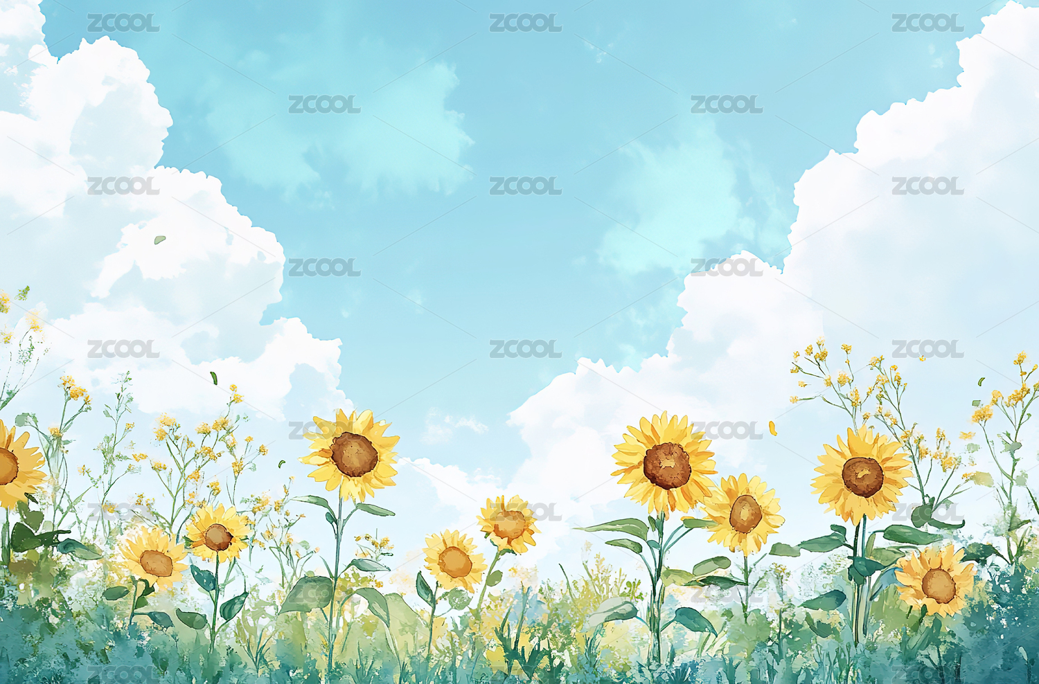 手绘,插画,花朵,AIGC202406,背景,壁纸,花,天空,风景,云