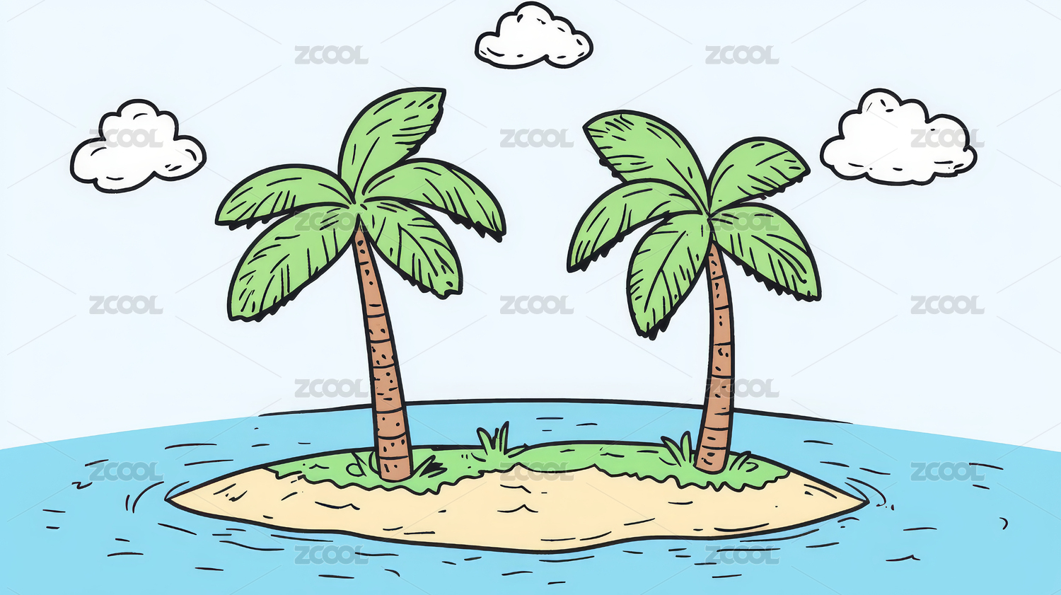 手绘卡通海面上的小岛插画素材