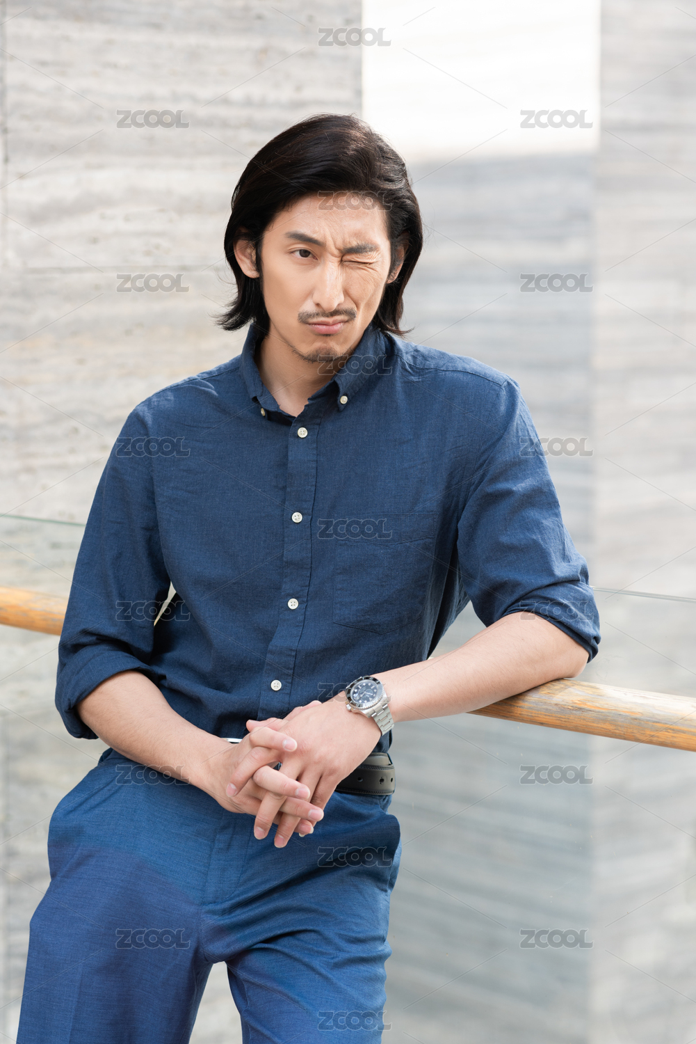 穿蓝色衬衫的亚洲男士