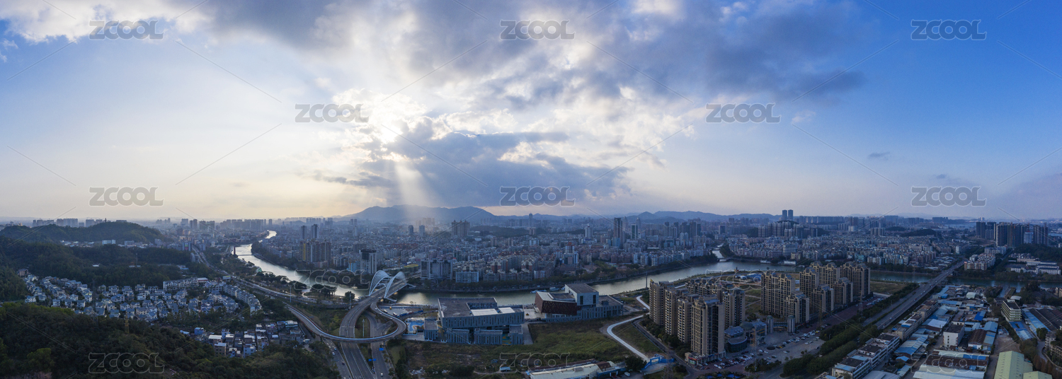 航拍城市风光天际线 江门城区 蓬江两岸