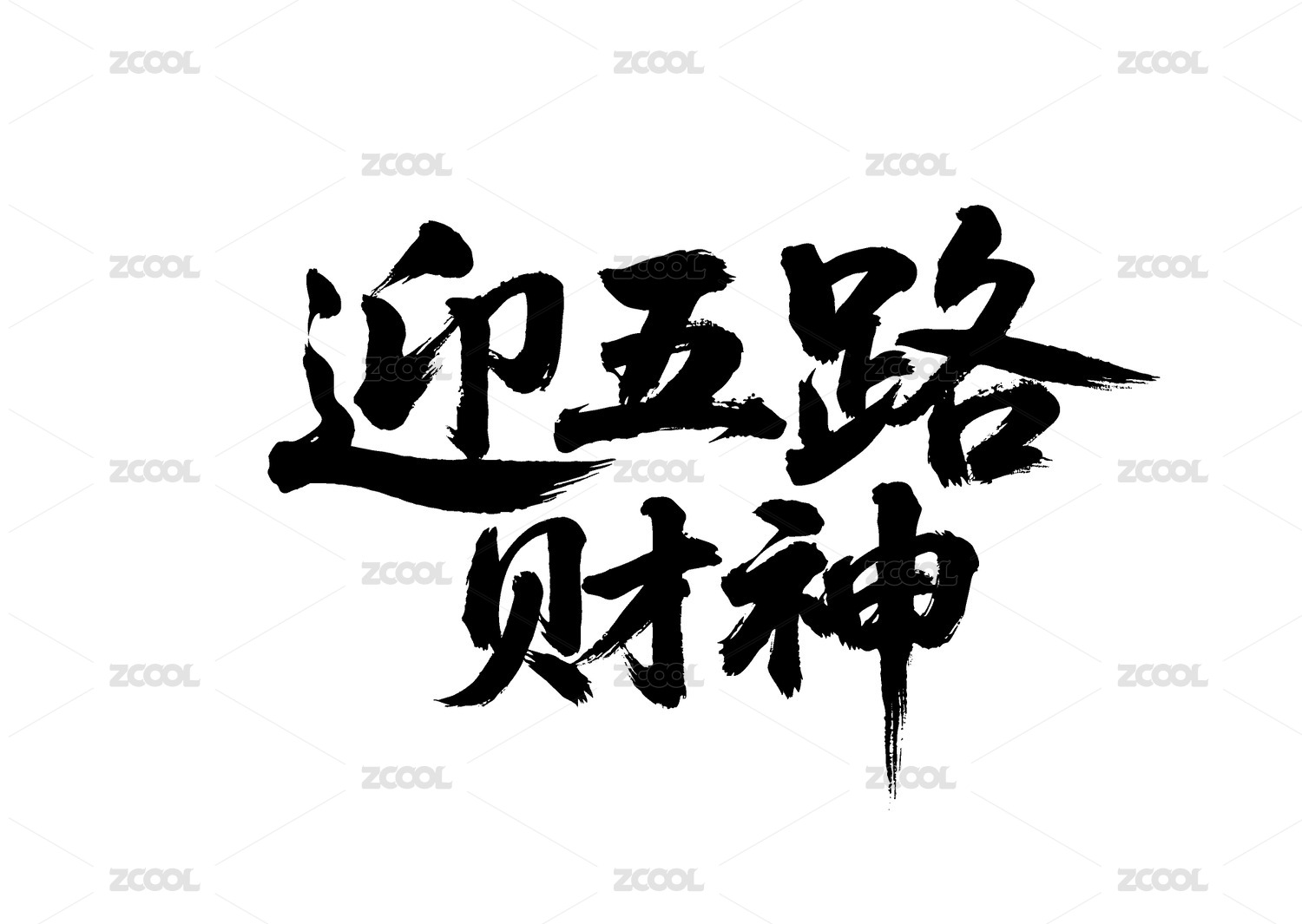 中国风,书法,书法字,迎财神,手写,手写字,艺术字,横构图,排版,年俗