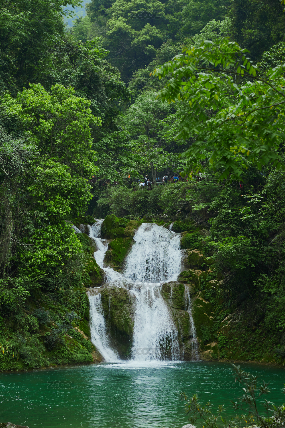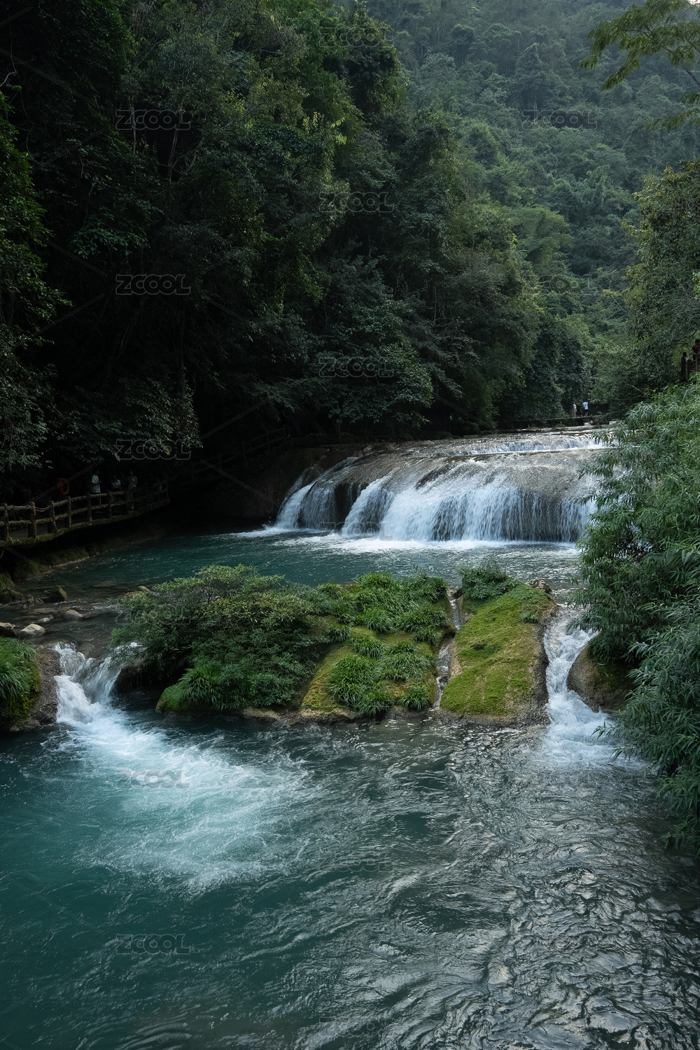 中国贵州黔南荔波小七孔跌水瀑布自然风光