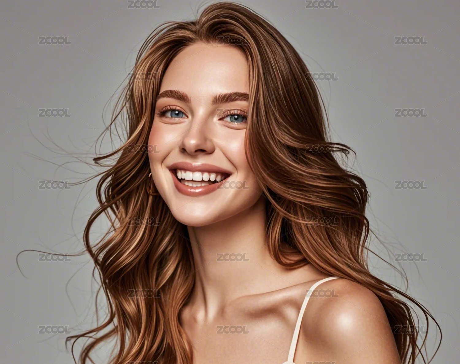DXCZ202406,欧美,女生,人像,摄影,AIGC,卷发,开心,微笑,笑容