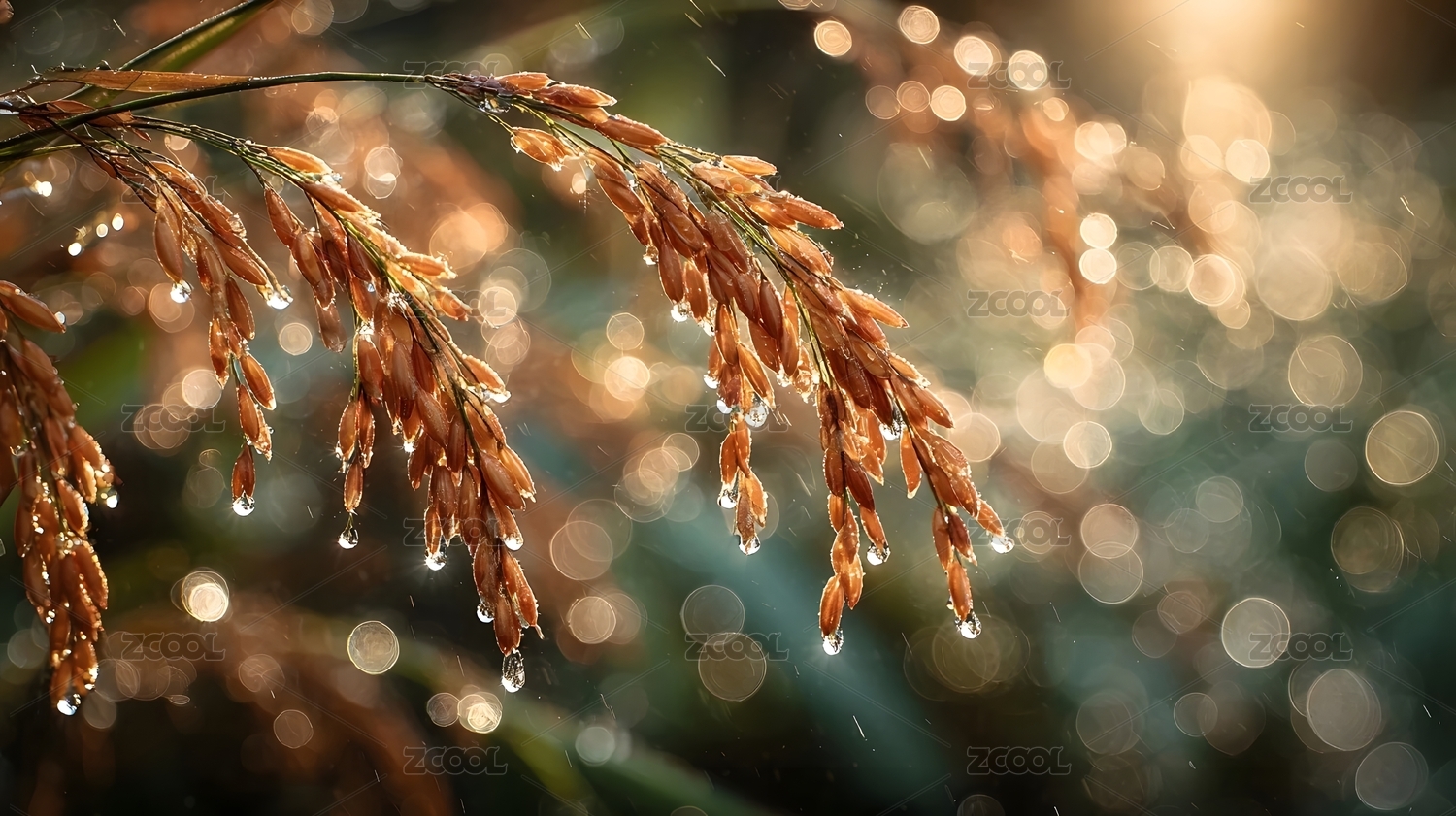晨露中的稻穗特写