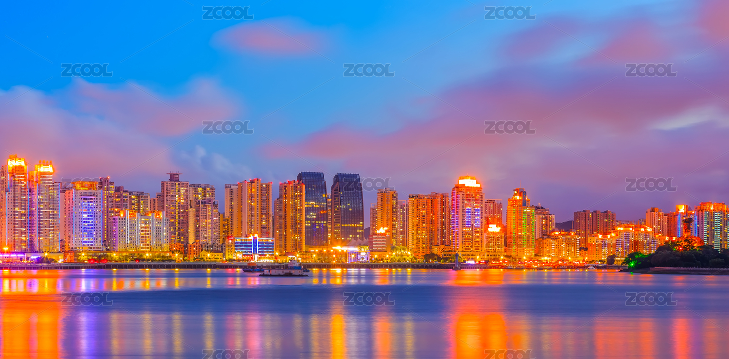 中国,户外,浙江,温州,夜景,瓯江,城市,江心屿,慢门,倒影