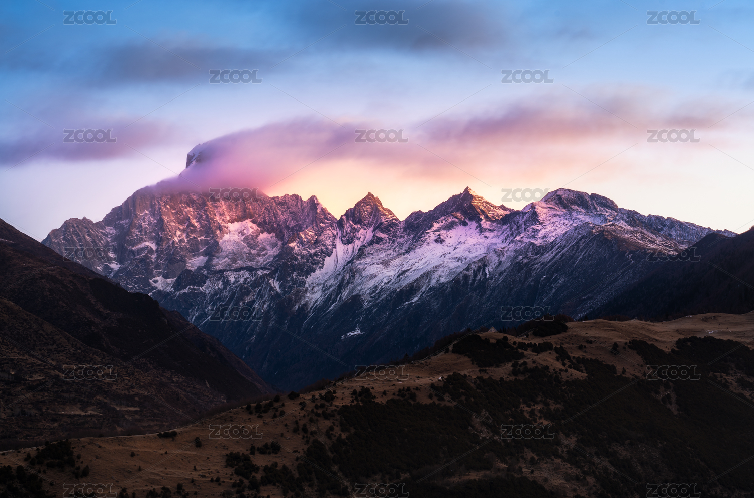 中国四川阿坝小金县四姑娘山夕阳下风光