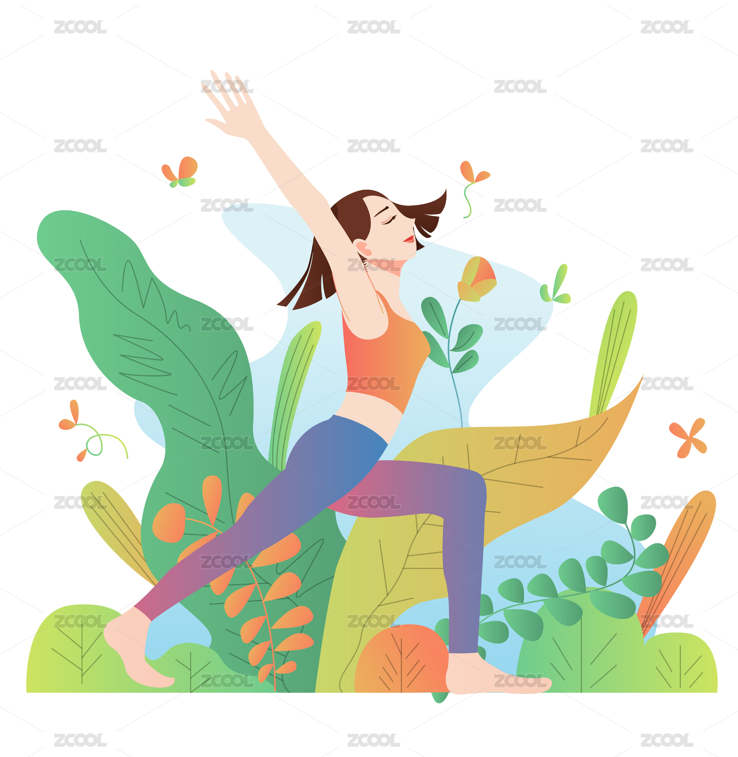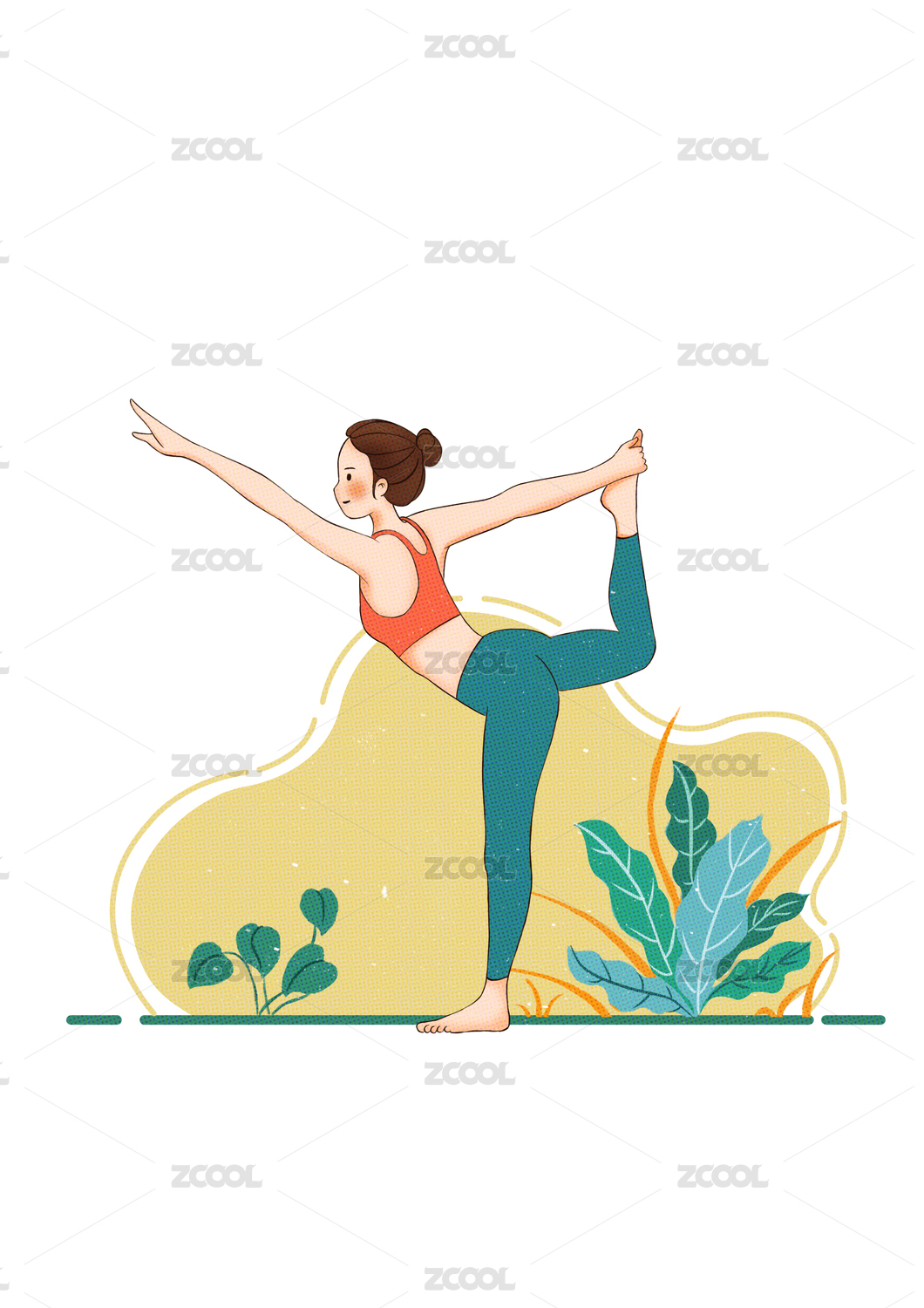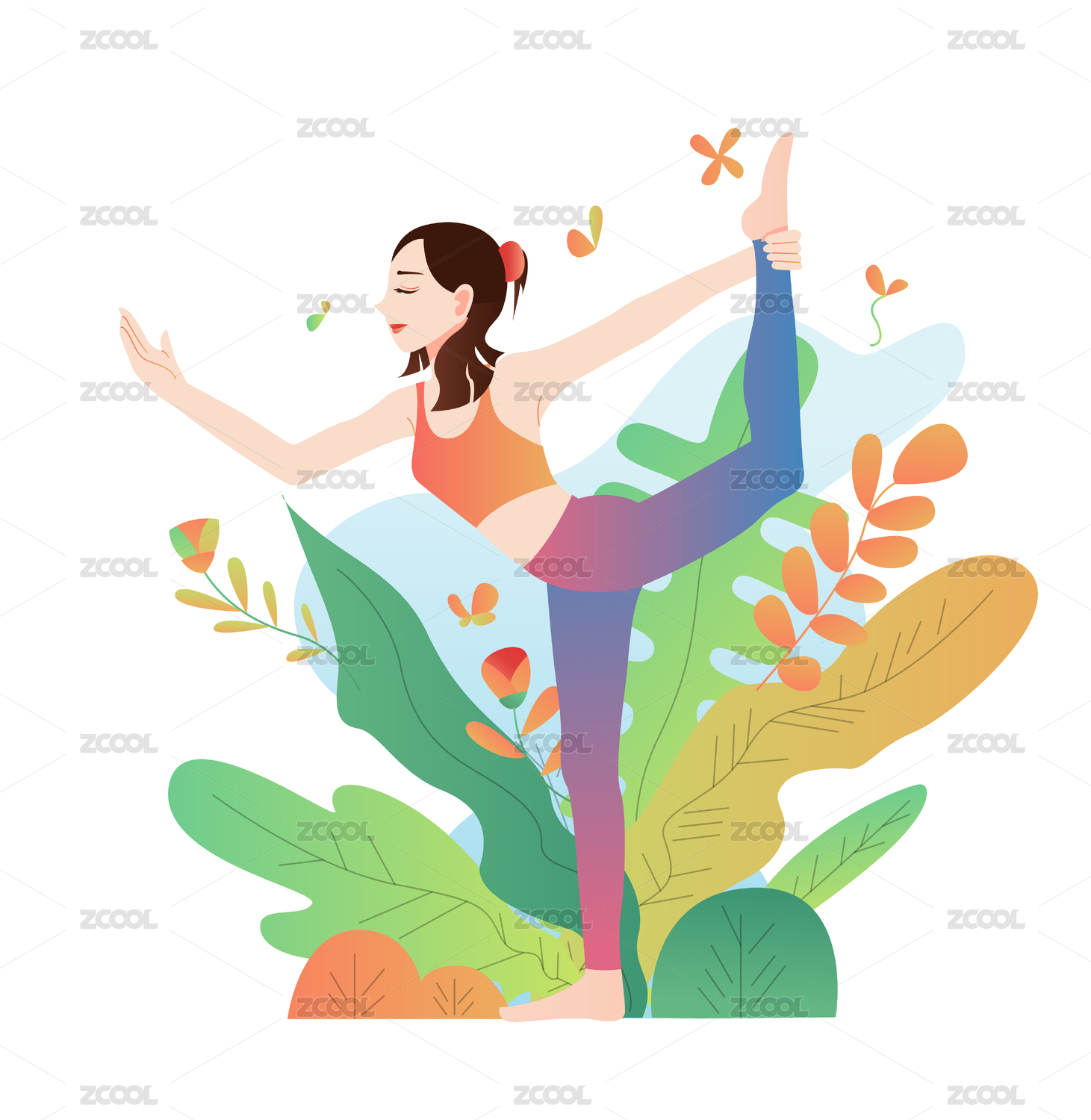 瑜伽,姿势,植物,背景,艺术,女人,女孩,矢量,插画,插图