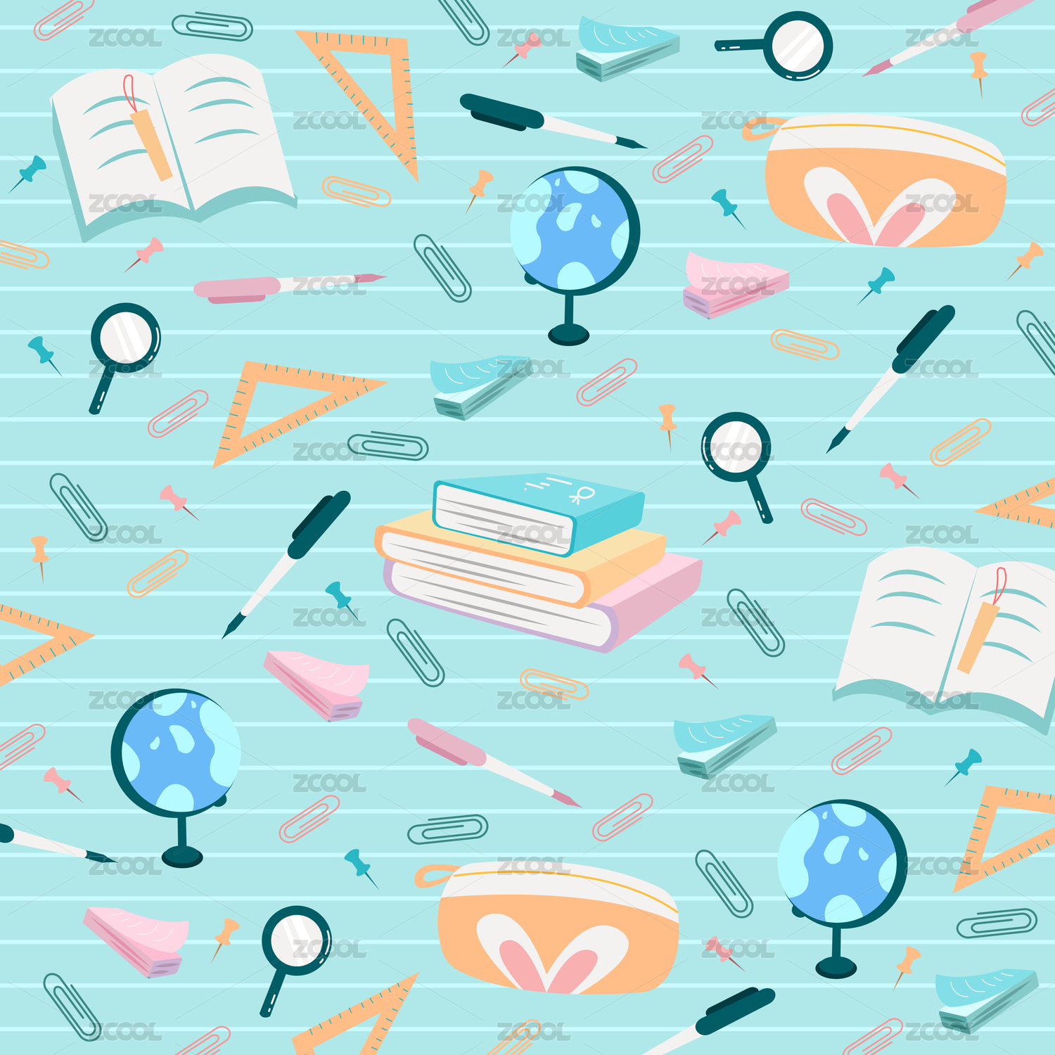 潮流可爱学习用品无缝插画