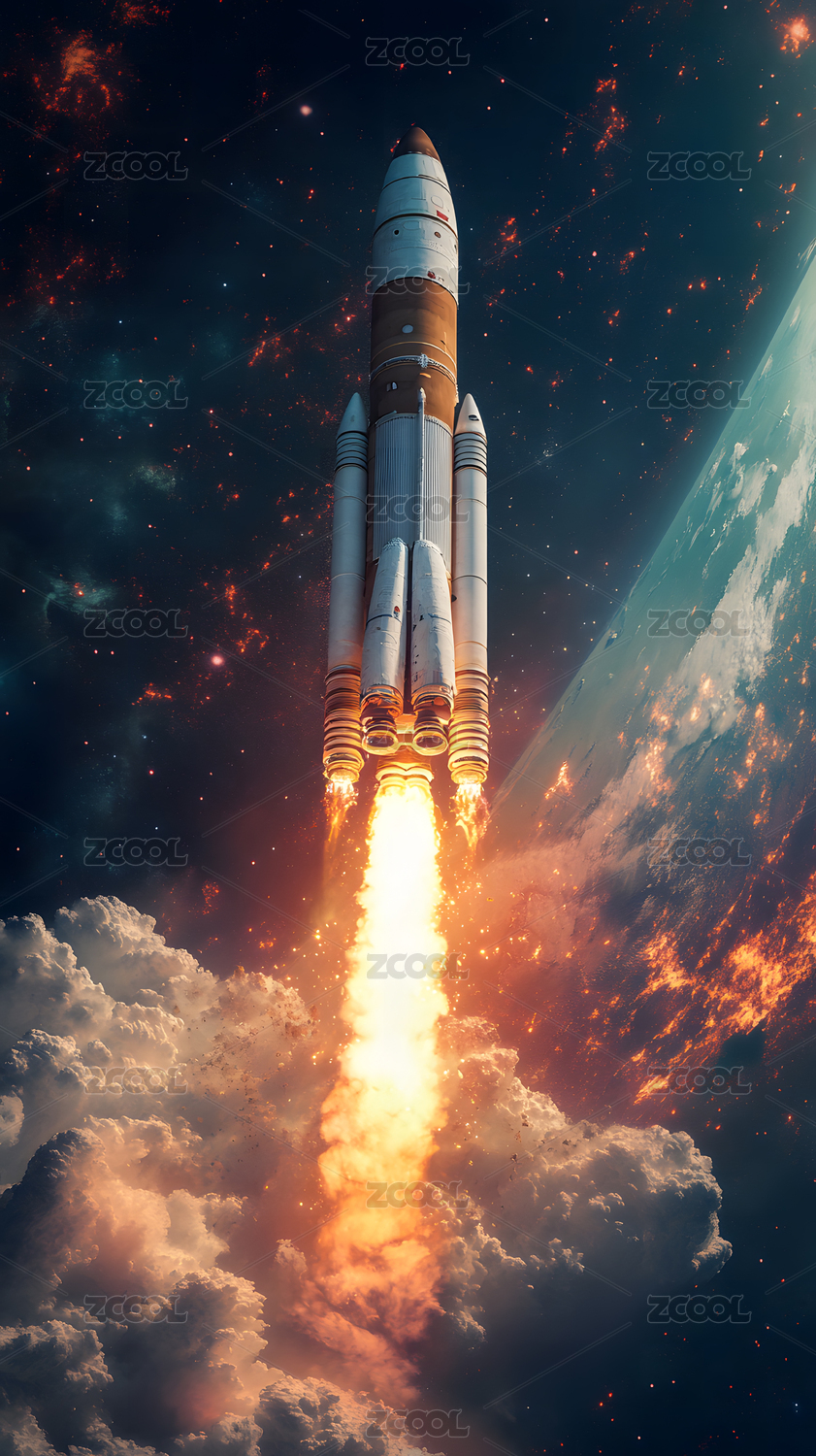 火箭突破云层飞向太空