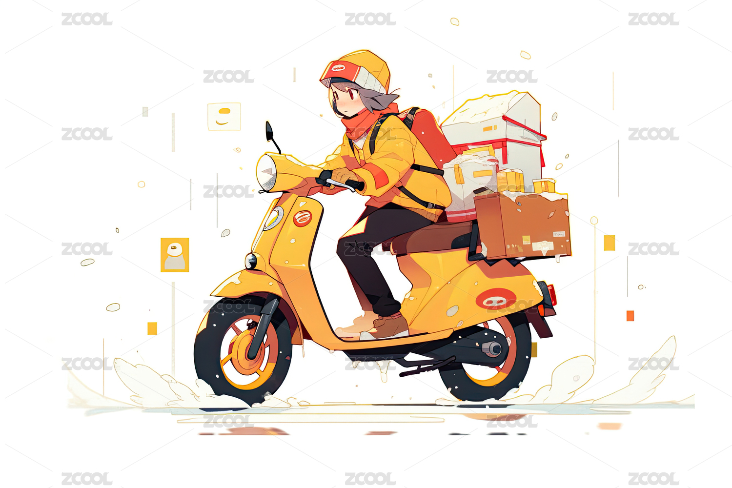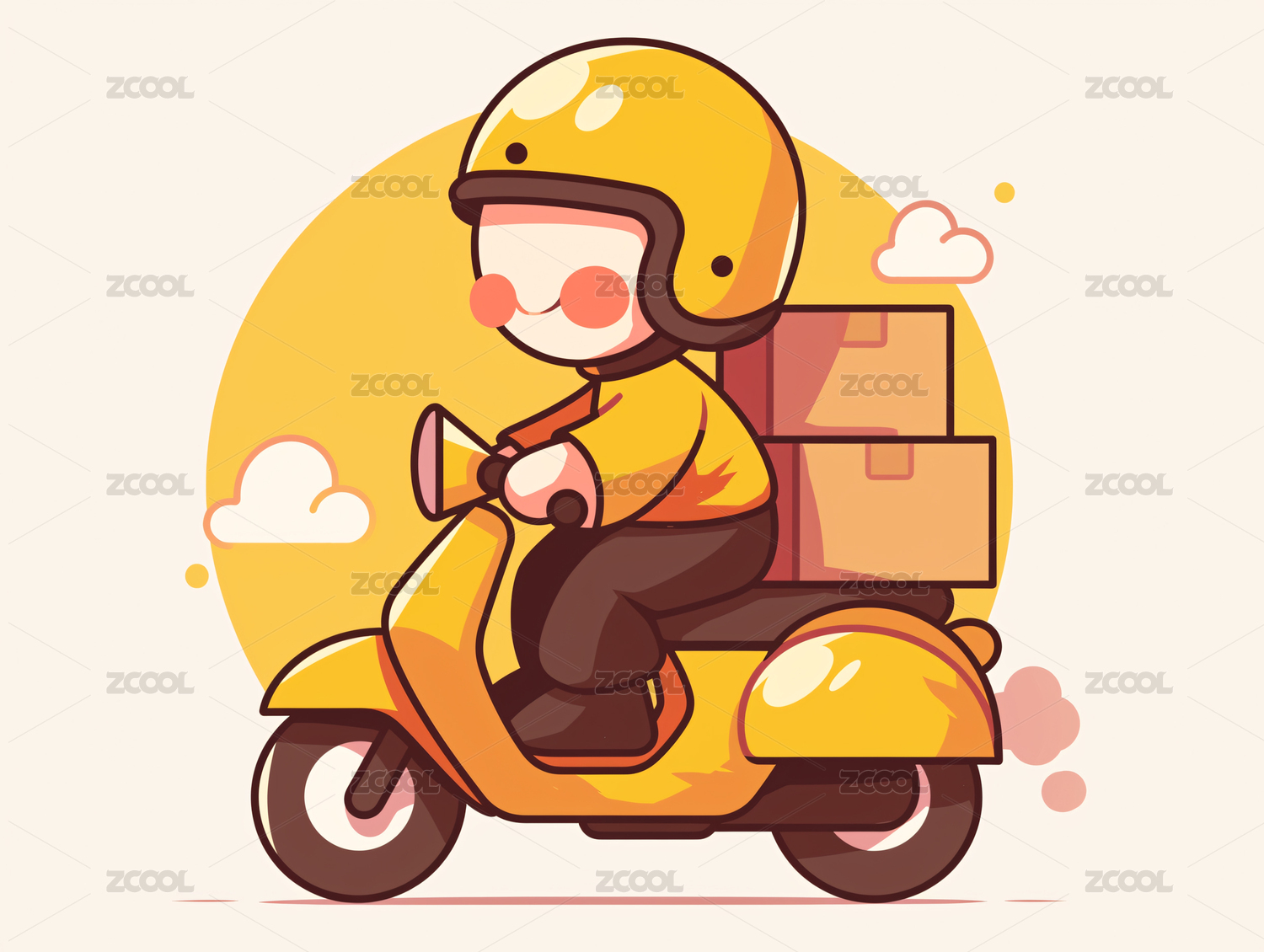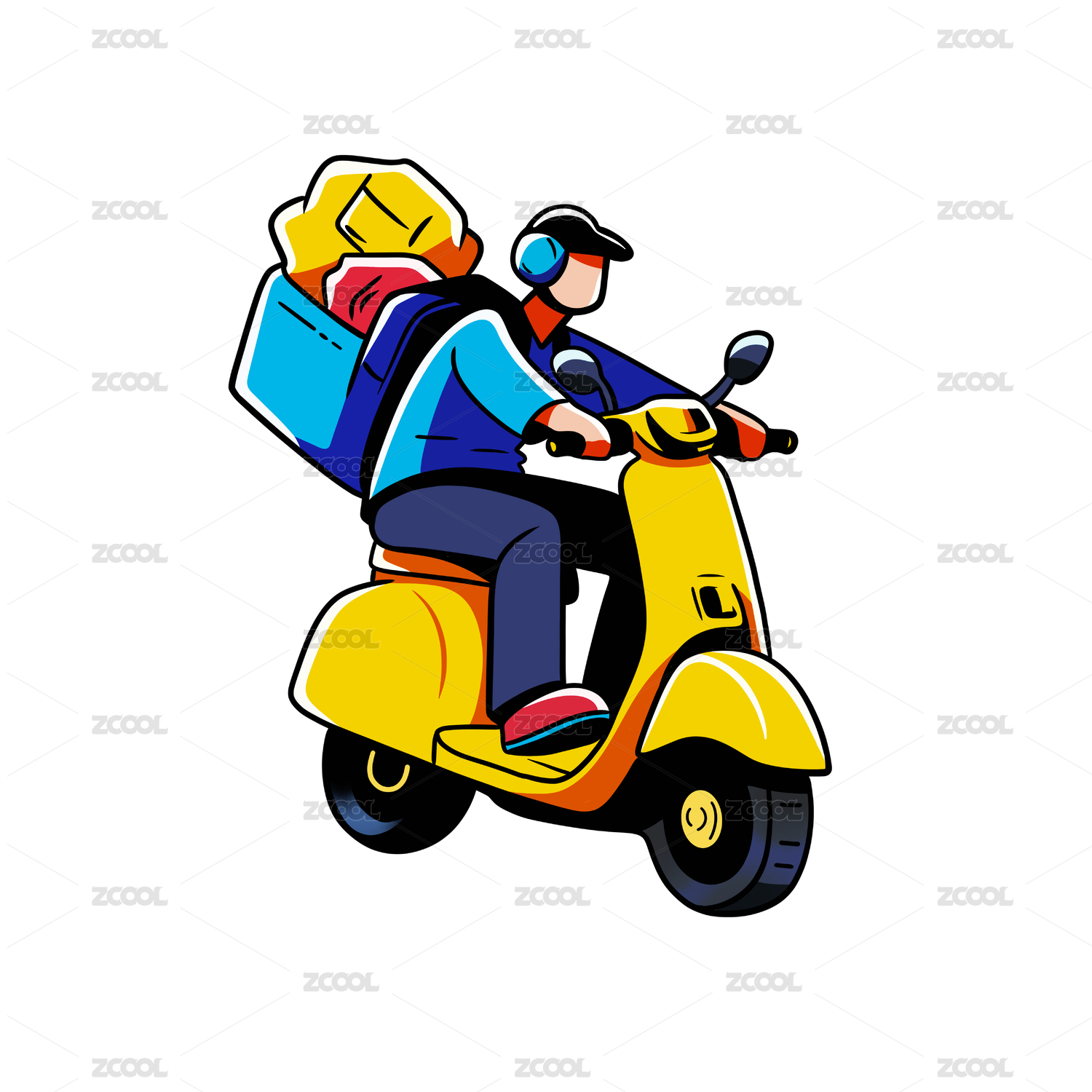 骑电驴的外卖小哥送外卖宅急送蓝黄配色素材
