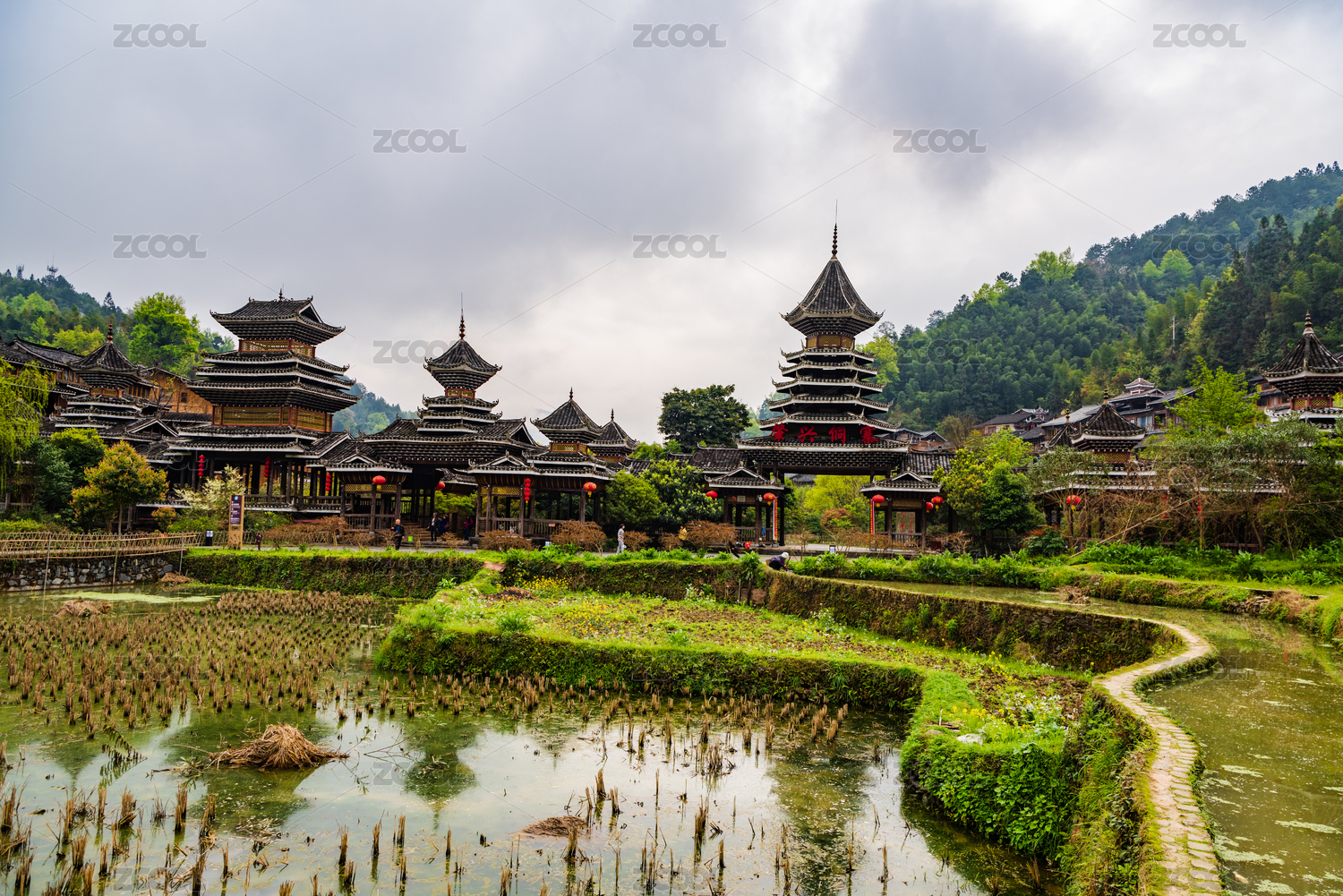 中国贵州黔东南黎平肇兴桐寨初春景观