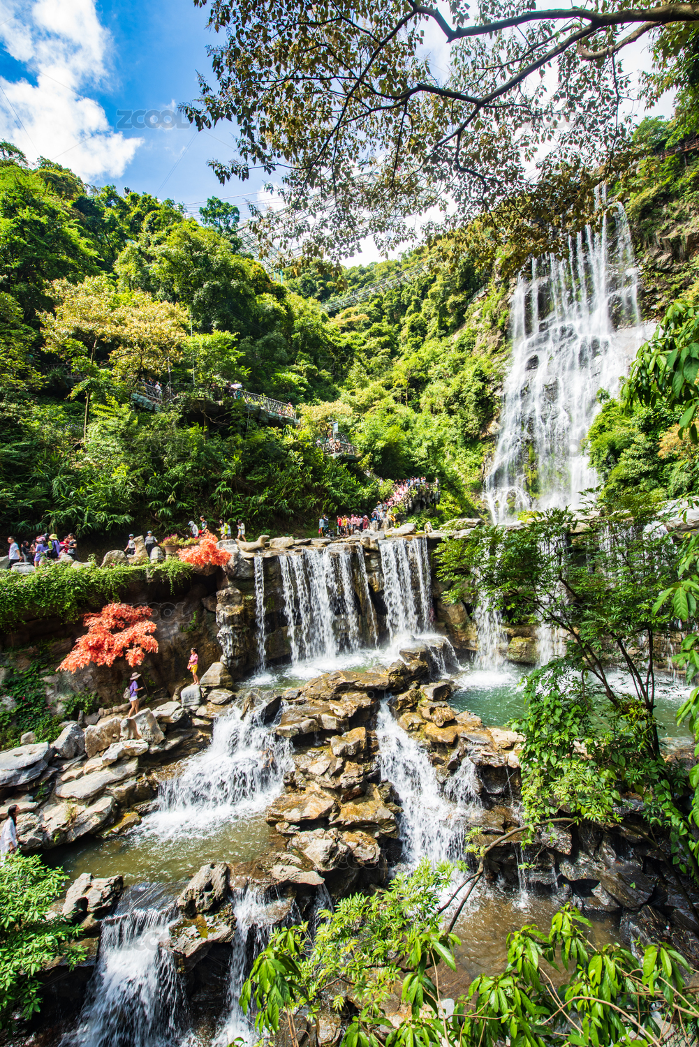广东,清远,古龙峡,瀑布,山谷,峡谷,水流,阶梯,晴天,蓝天