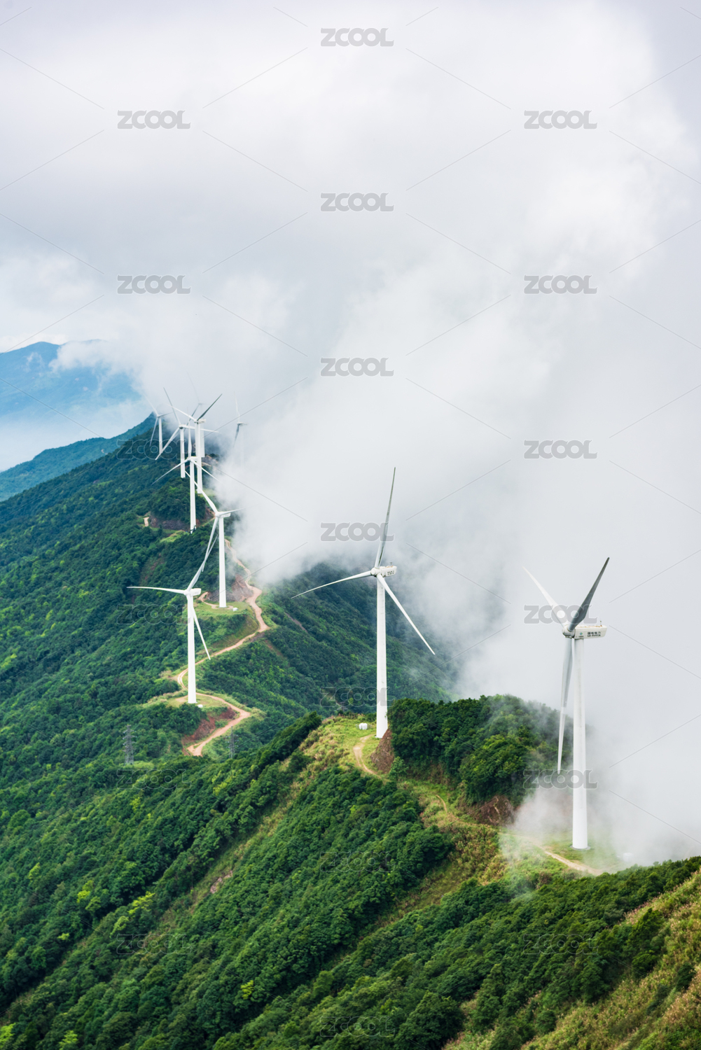广东河源缺牙山日出时分的丁达尔与风车景观