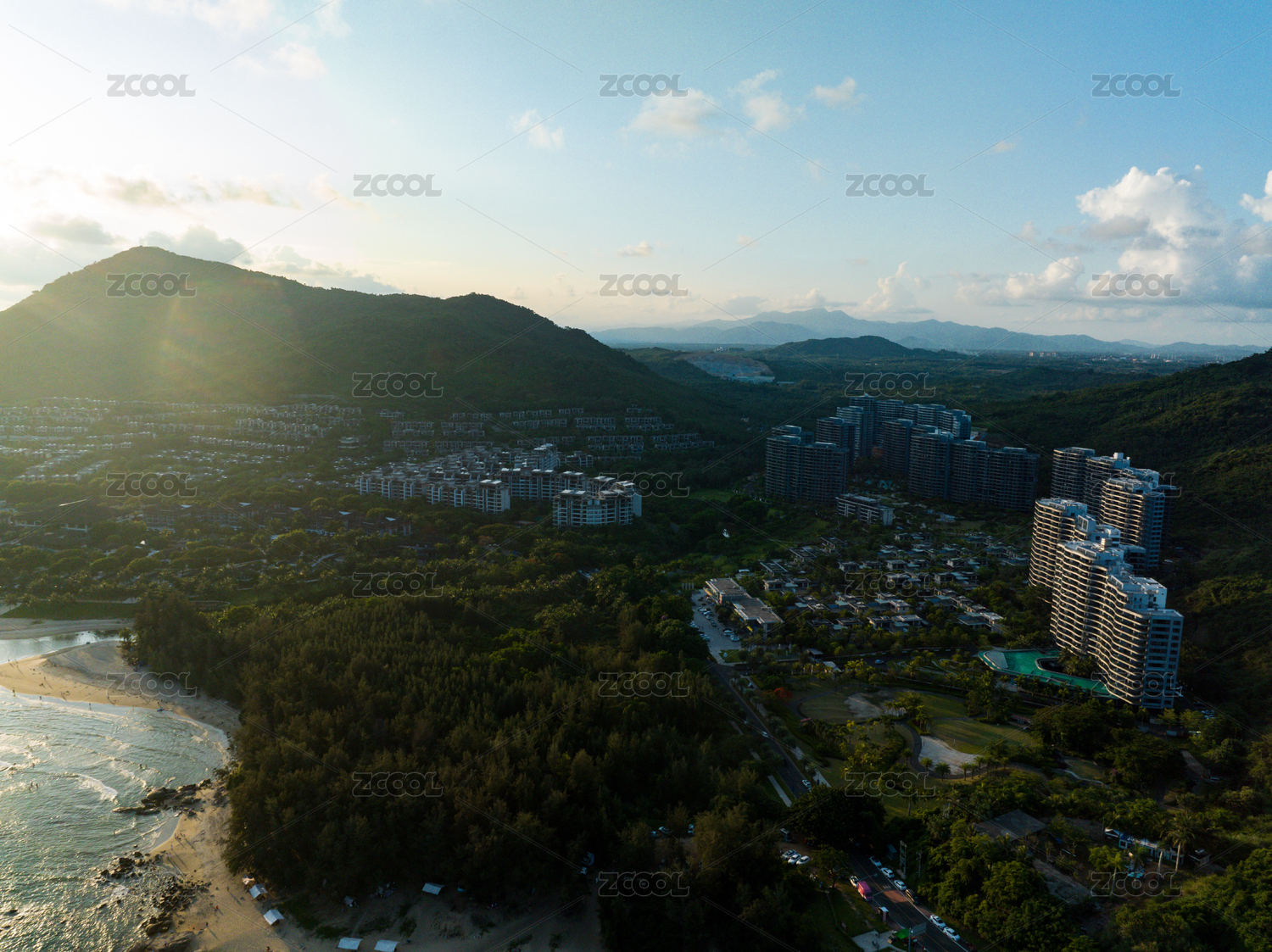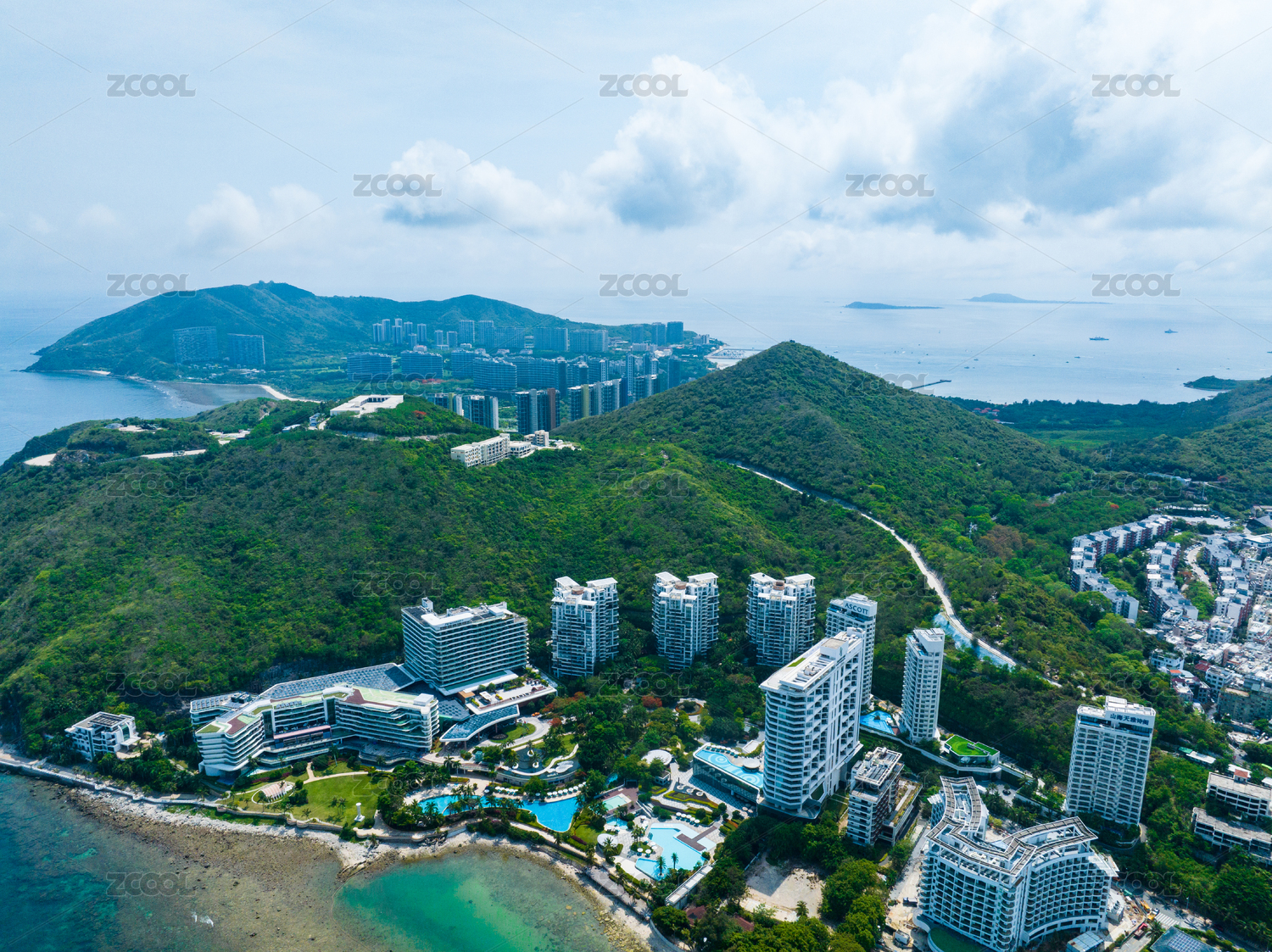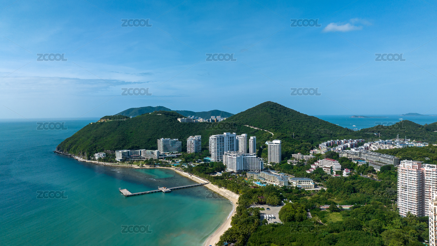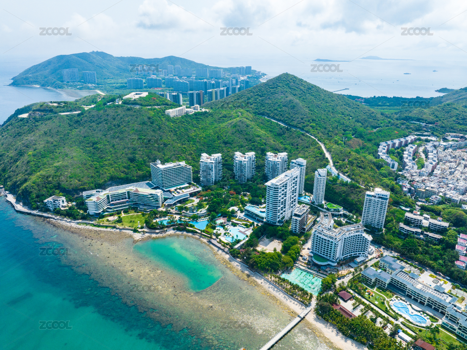 航拍中国海南三亚海棠湾度假酒店带及海景沙滩