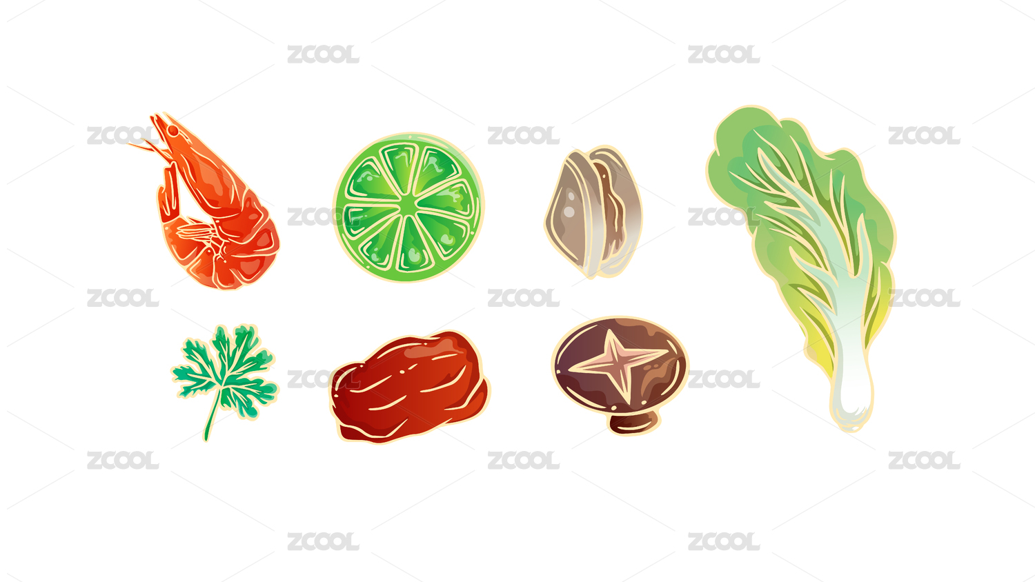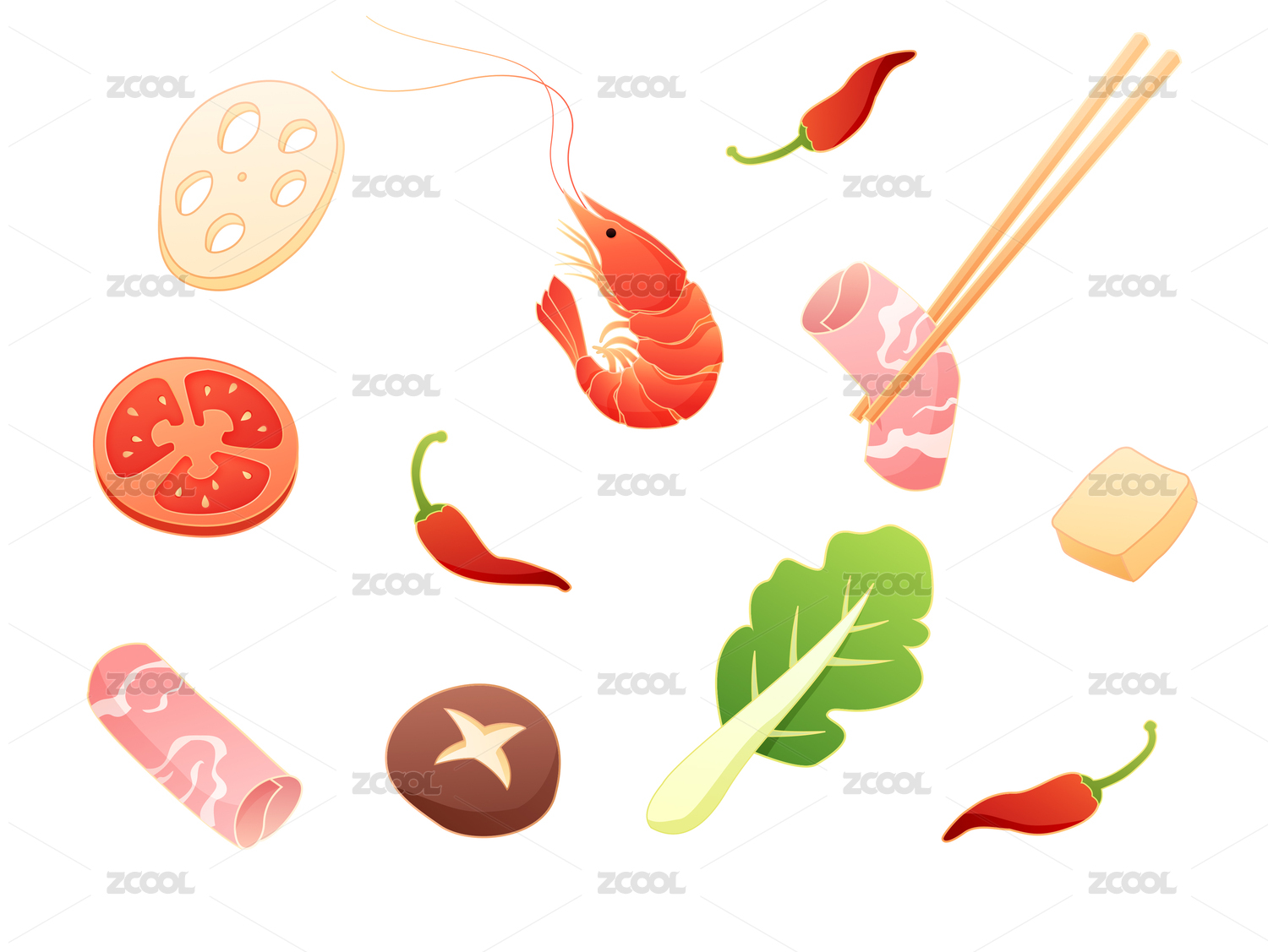 国风火锅食材矢量插画元素