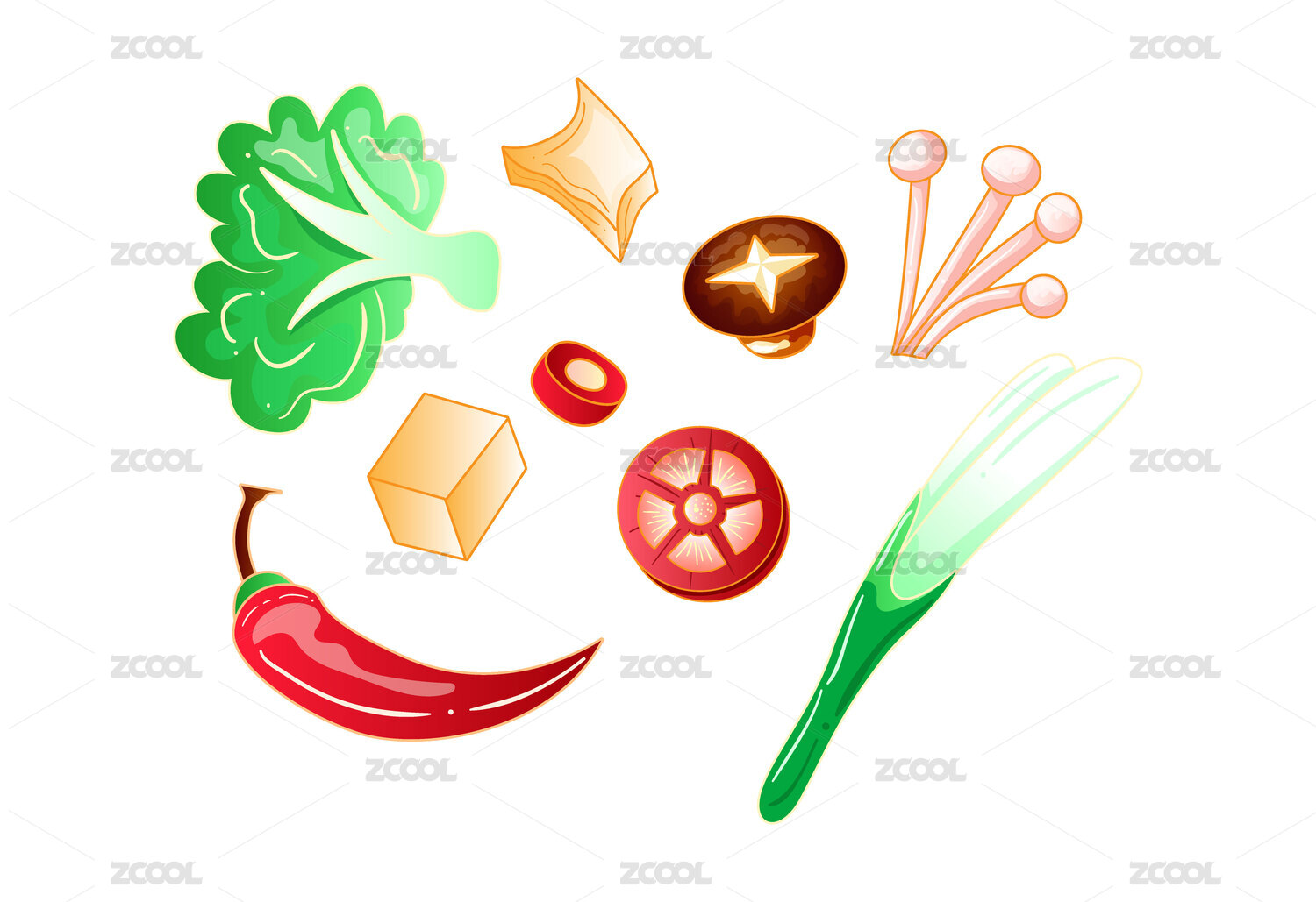 中国火锅配菜食材国潮矢量元素插画