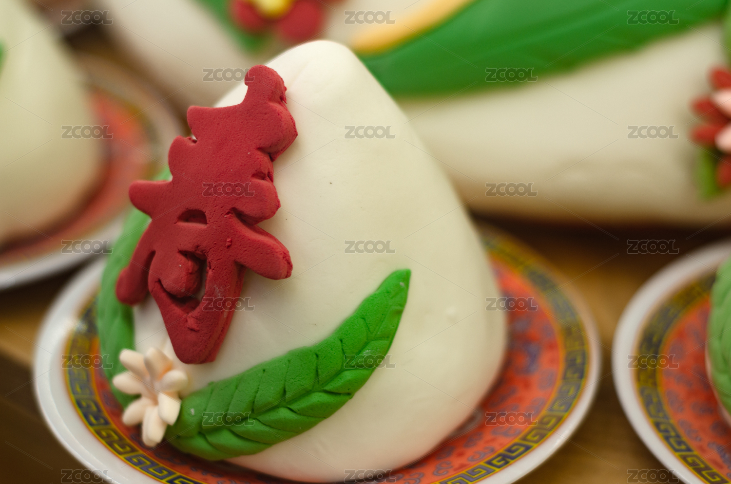 一个镶嵌大红寿字的青岛胶东大饽饽寿桃,馒