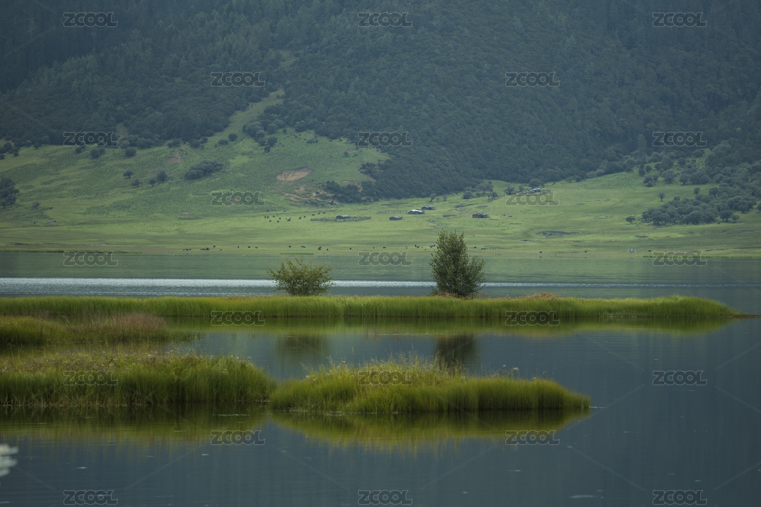 中国四川夏季川西绿意盎然的月亮湖露营圣地