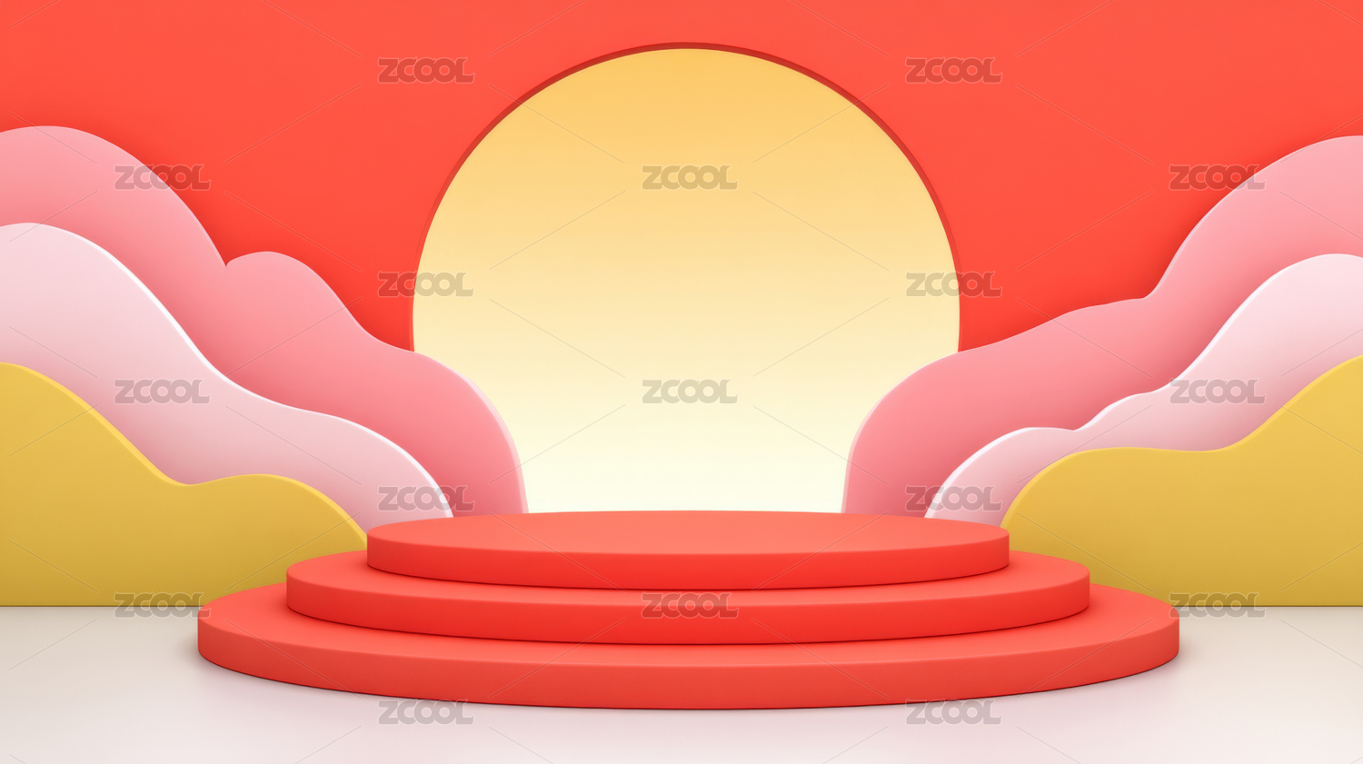 红色,圆形,几何,背景,简约,中国风,展台,电商,产品,广告