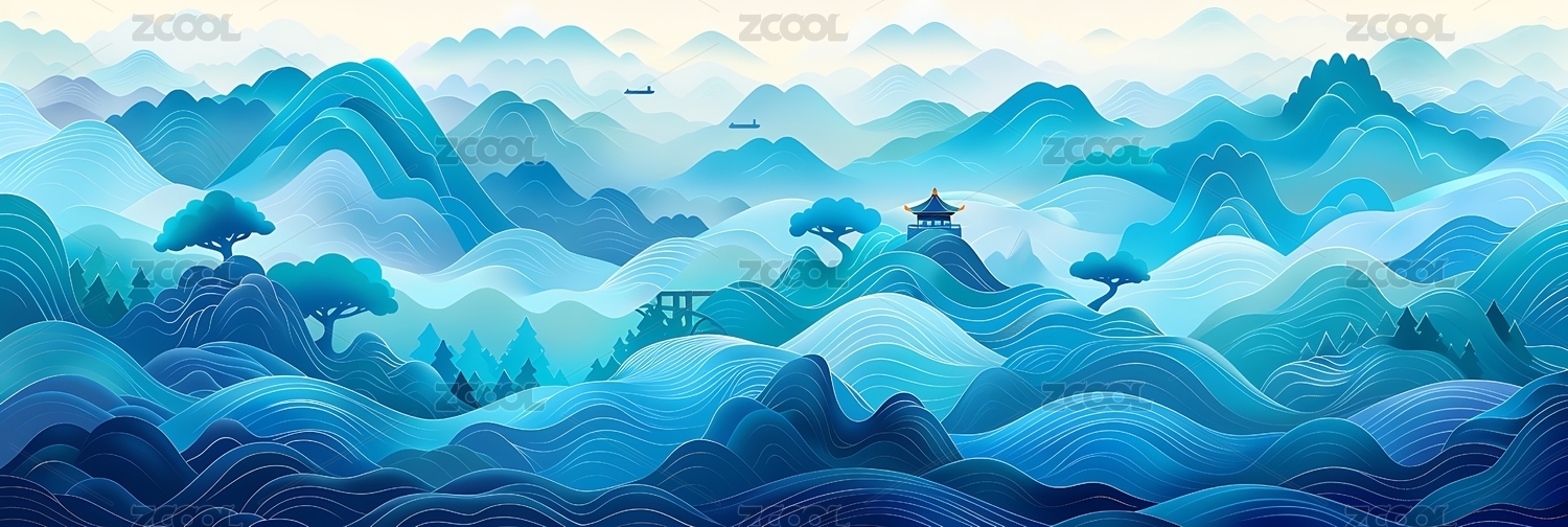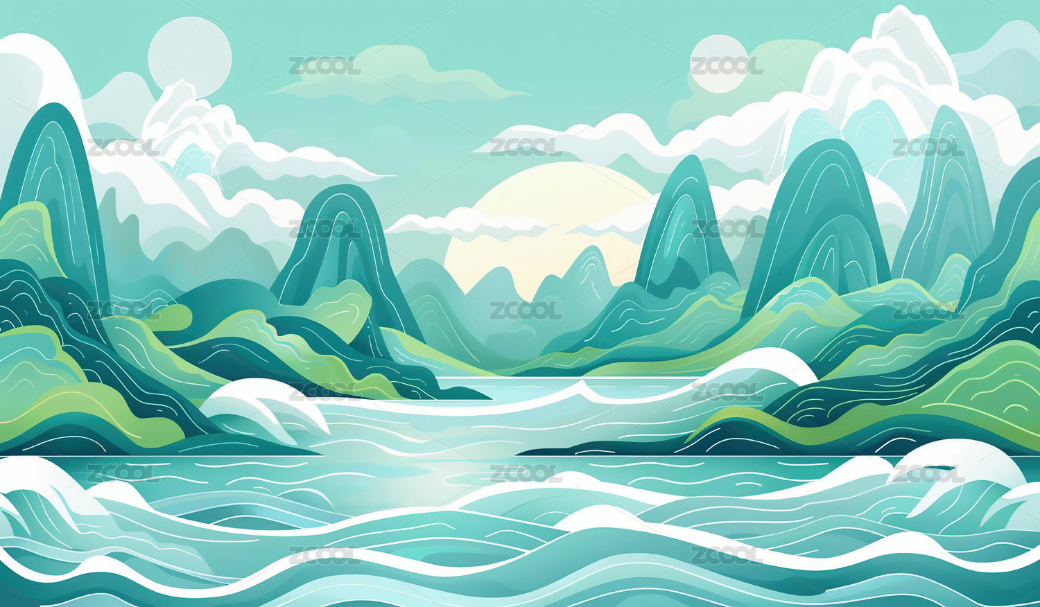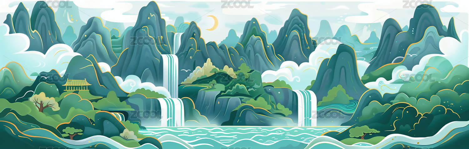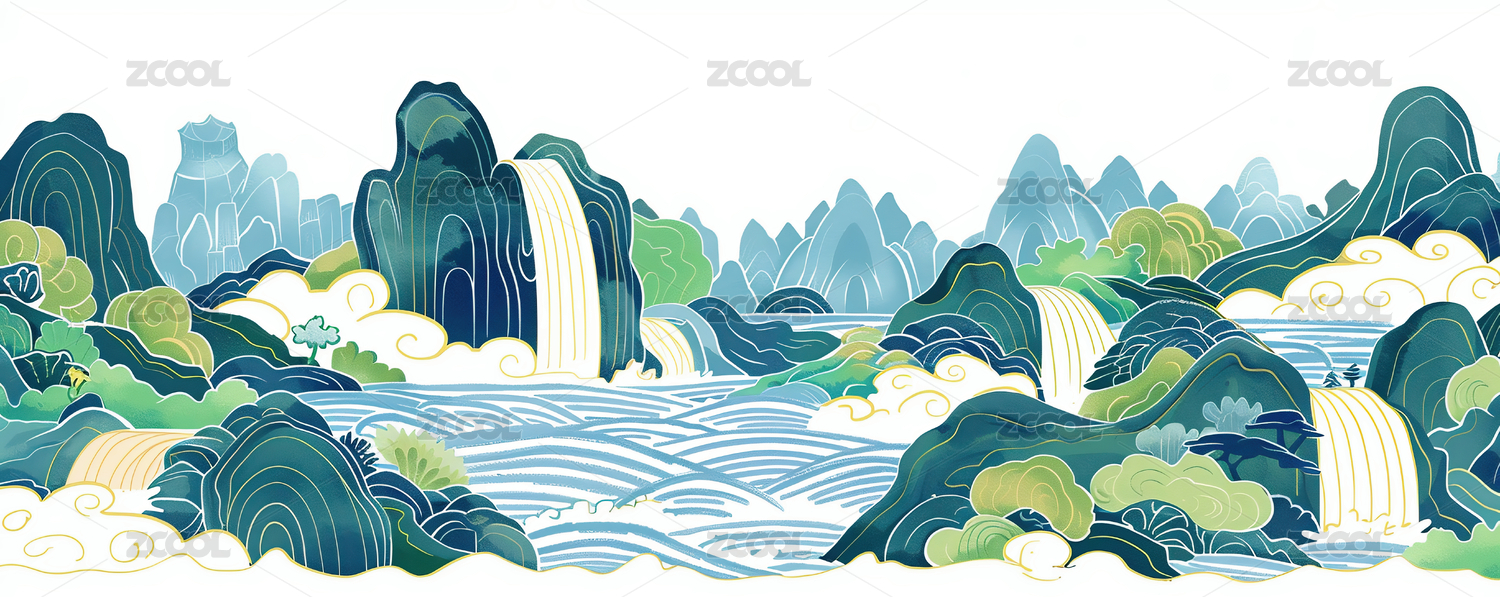 古风,国风,抽象,艺术,意境,自然,山泉,瀑布,天然,山水