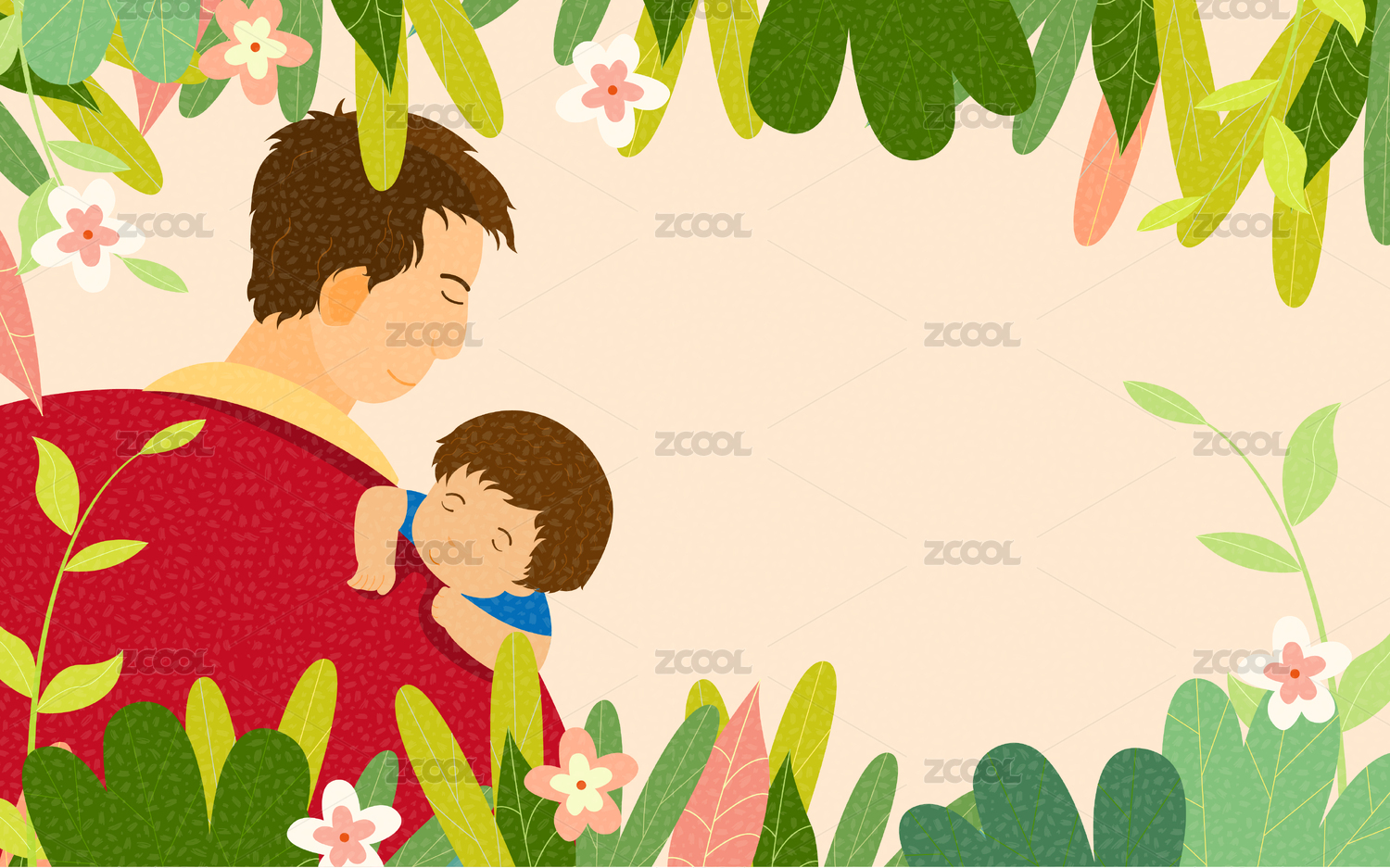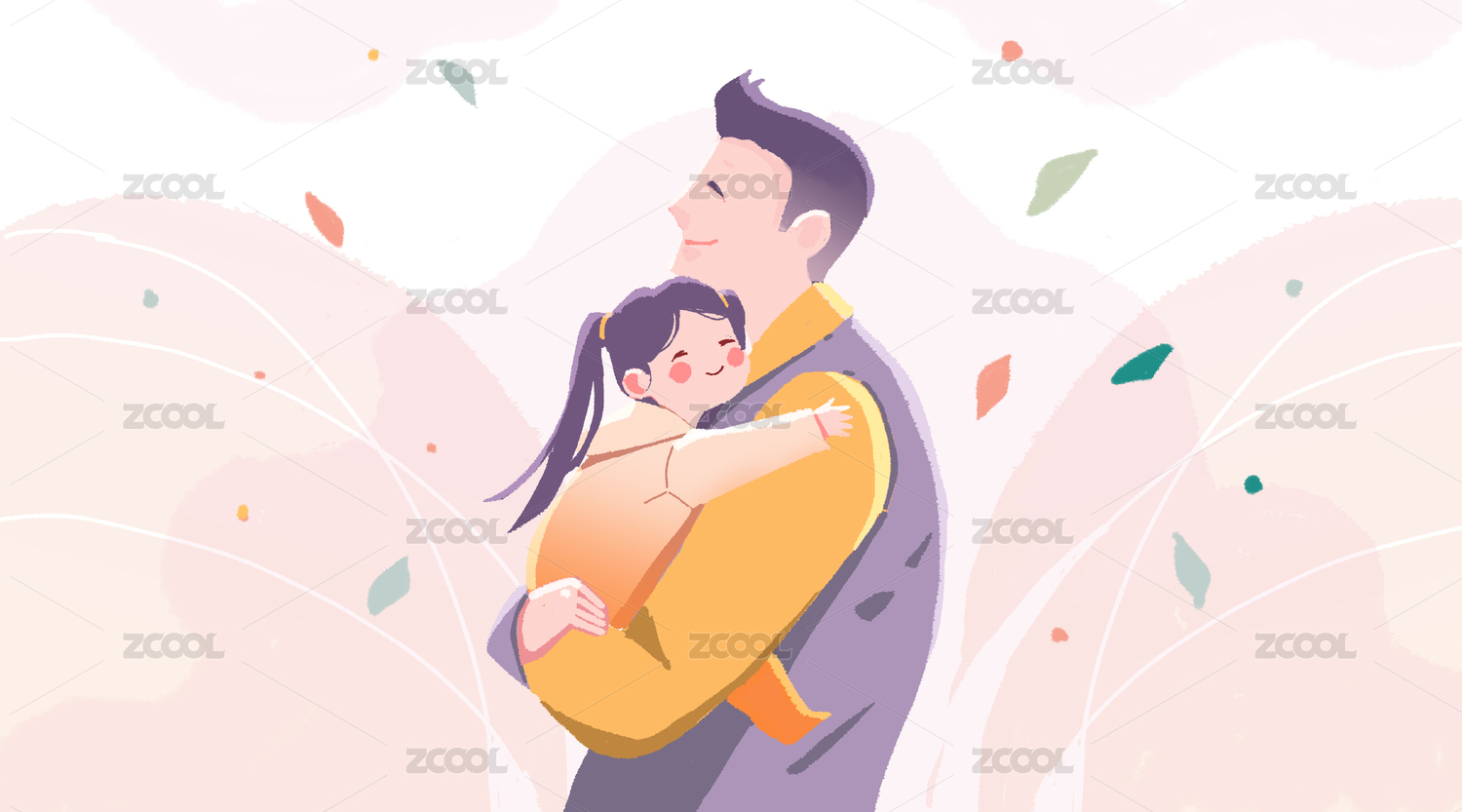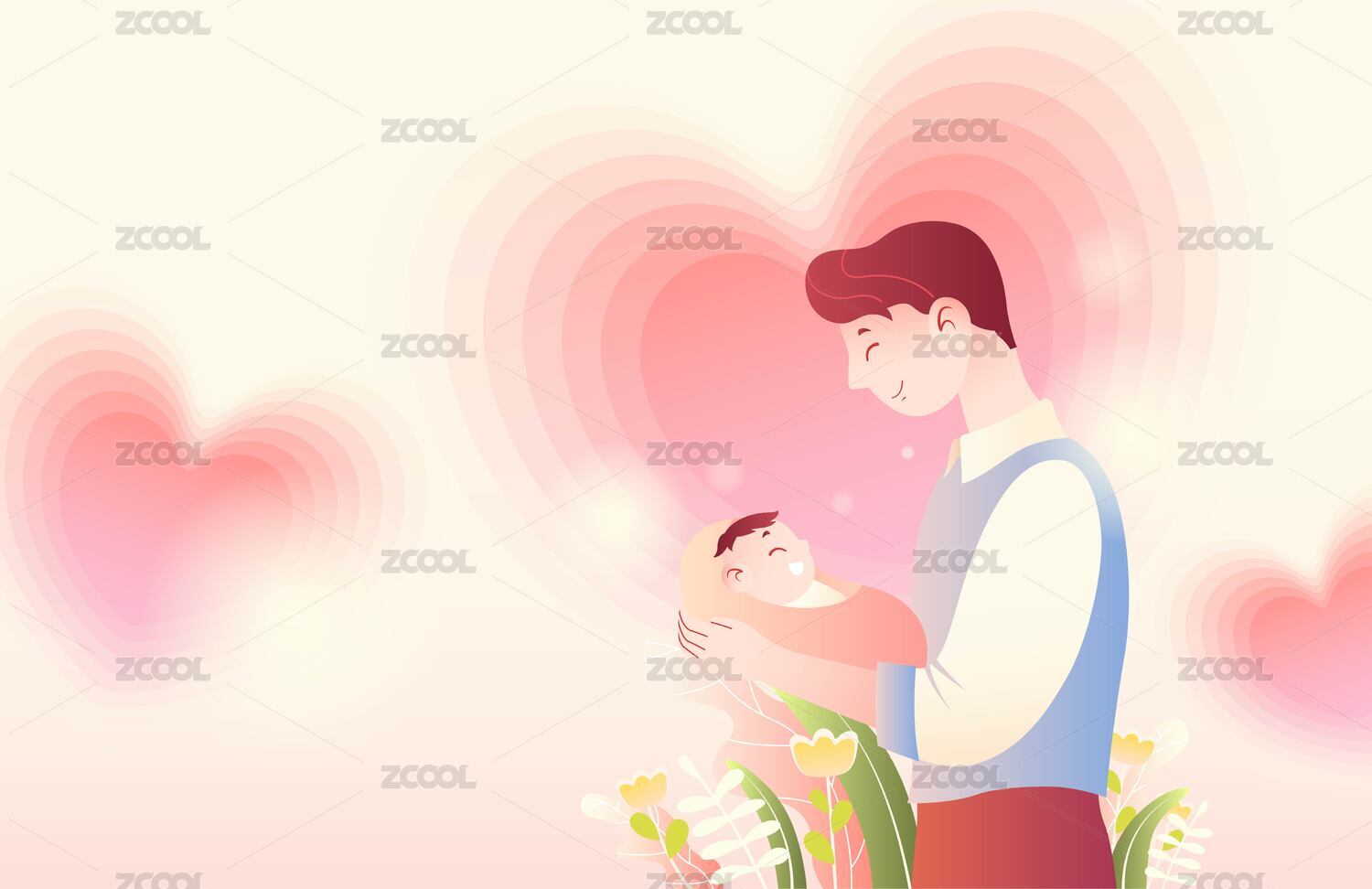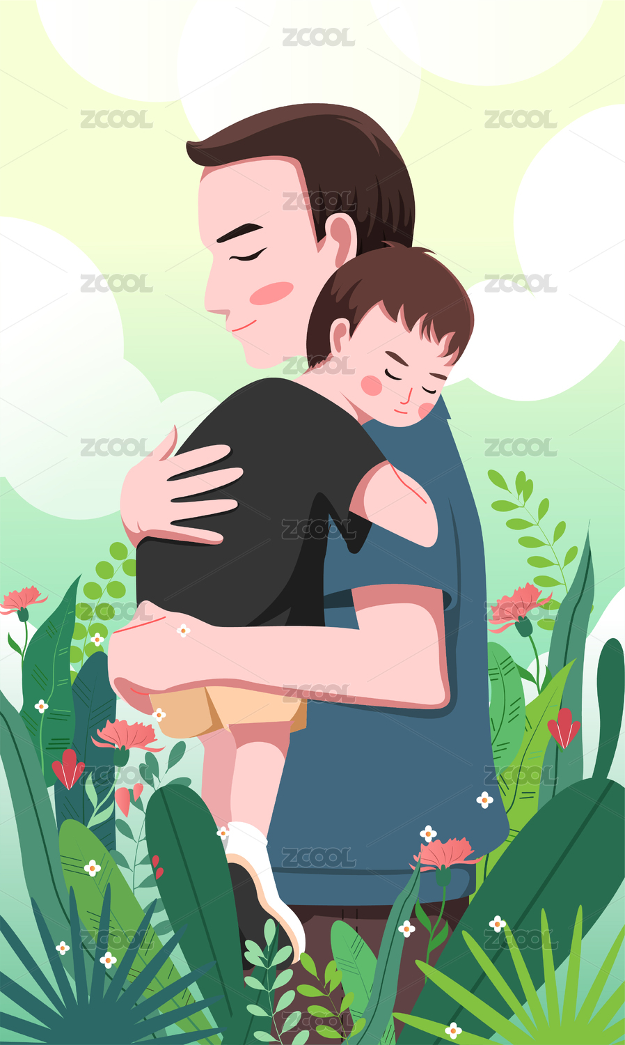 父亲节爸爸儿子一家人亲子玩乐拥抱家庭插画