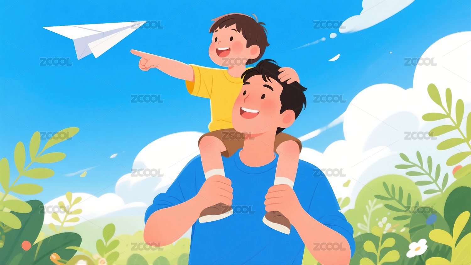 卡通儿童节父亲节亲子互动玩乐爸爸父爱插画
