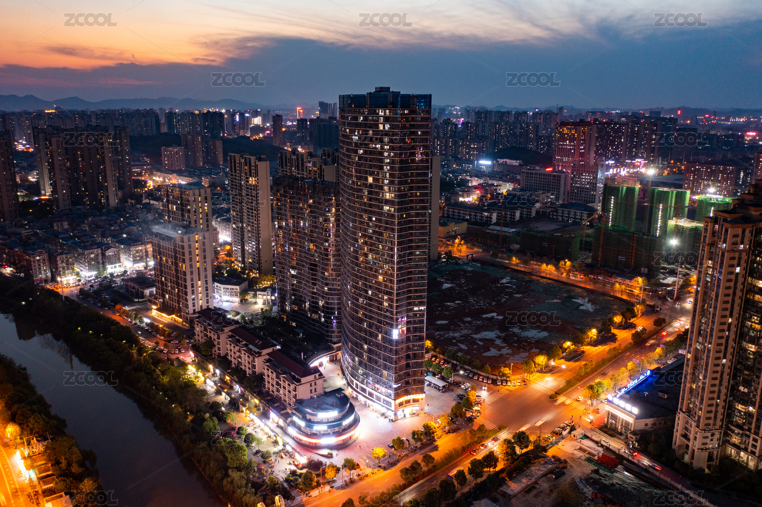 中国四川省夜幕遂宁市城区高楼大厦建筑