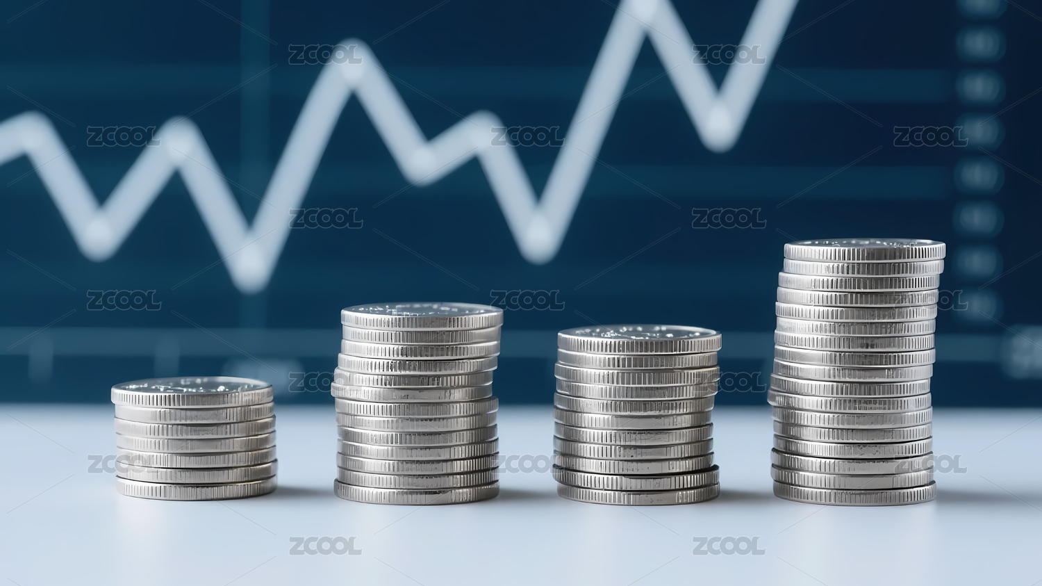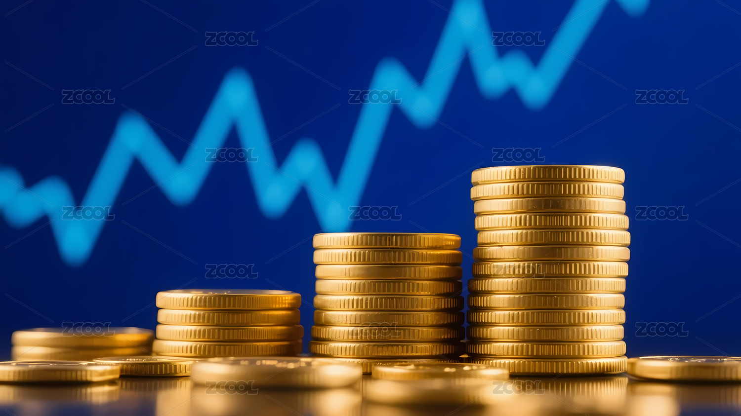 硬币堆与蓝色渐变背景