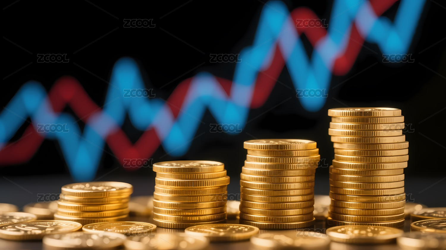 金币阶梯蓝色红色曲线背景