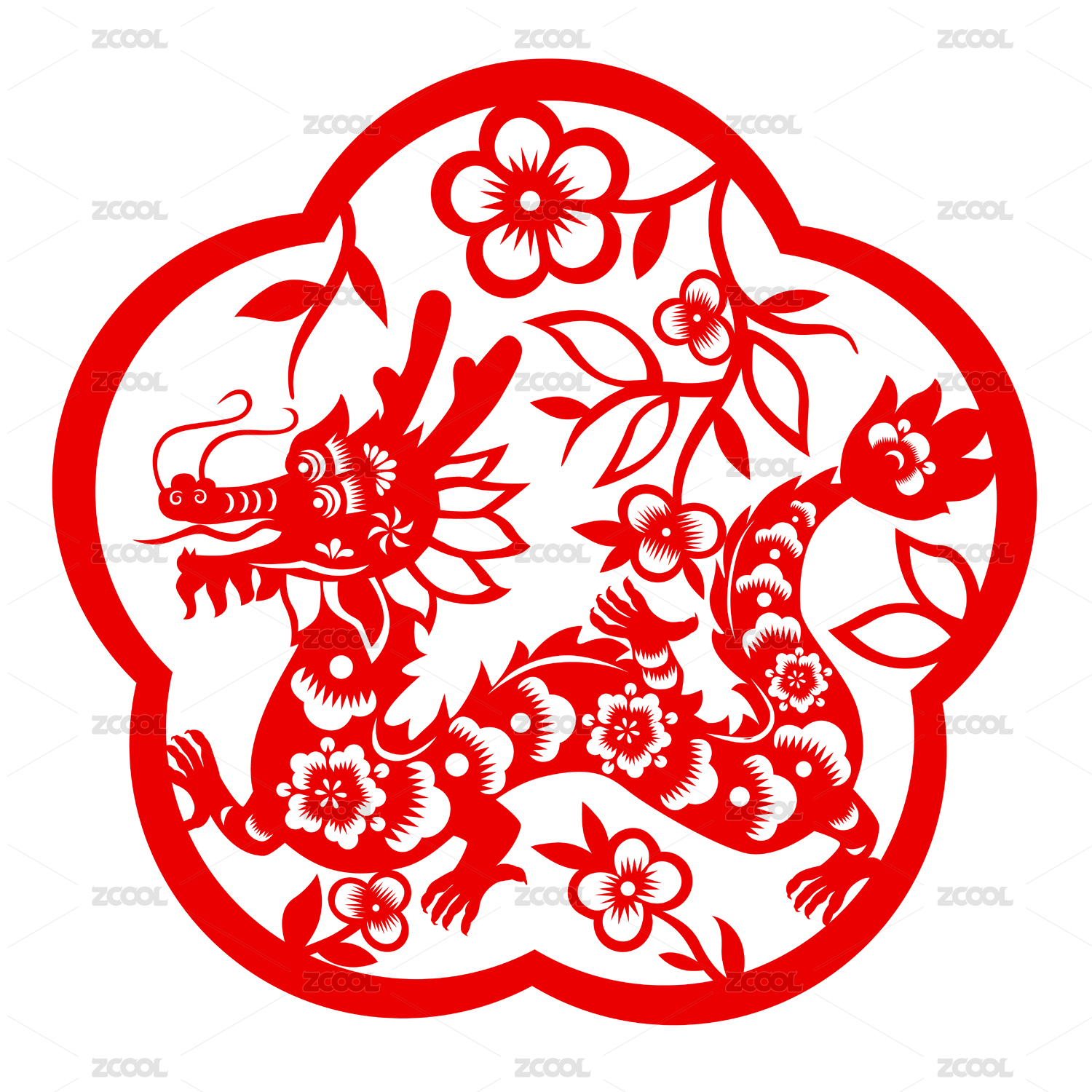 龙年春节剪纸插画