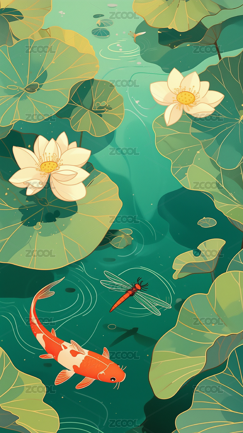 AIGCFG,中国风,插画,中式风格,国潮风,国风,荷花,荷塘,夏天,船