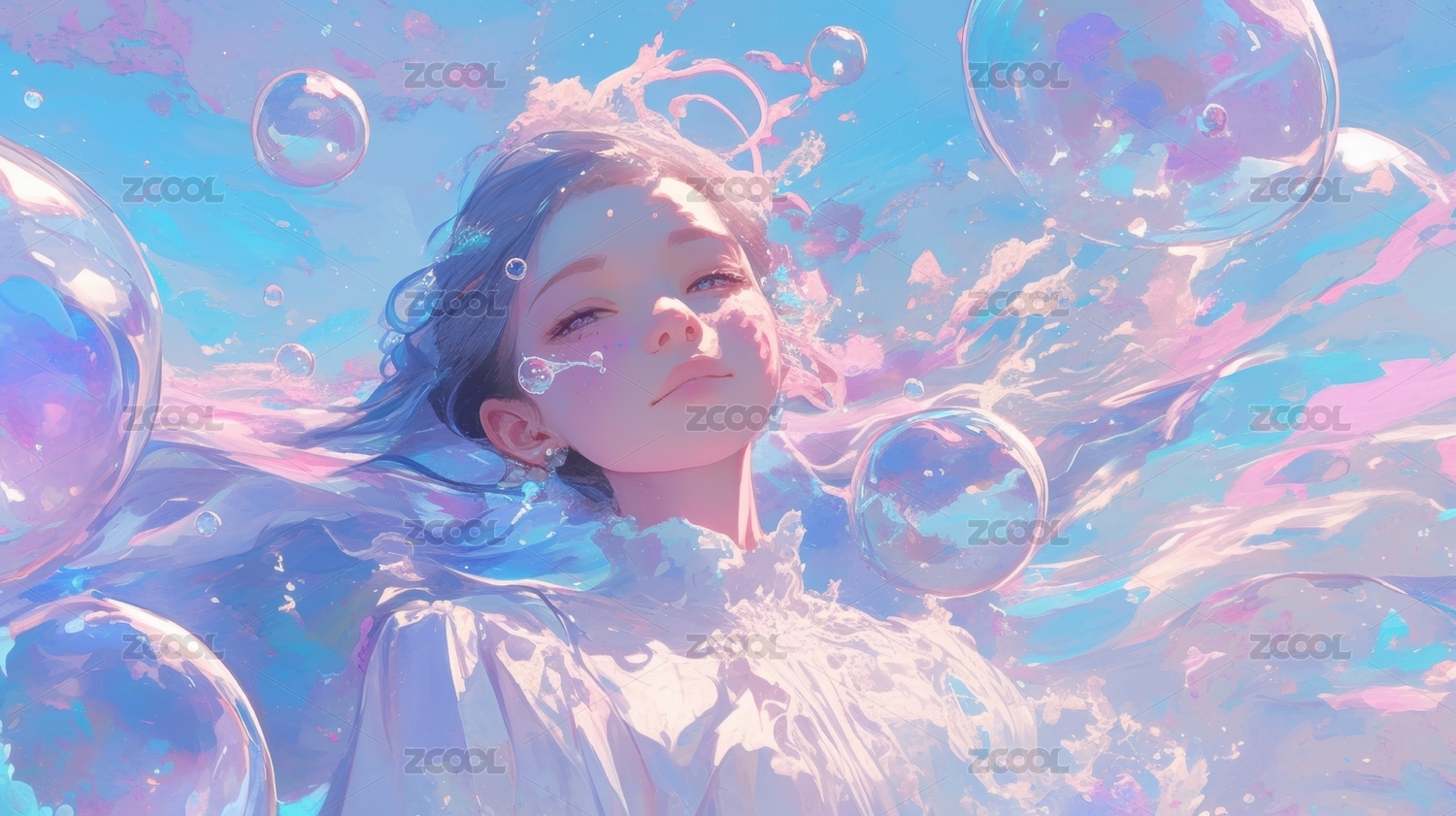 夏日在海上套着游泳圈享受悠闲时光的女孩