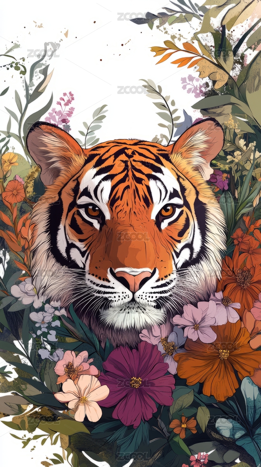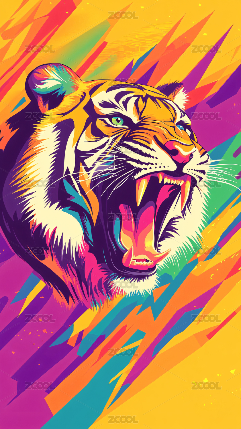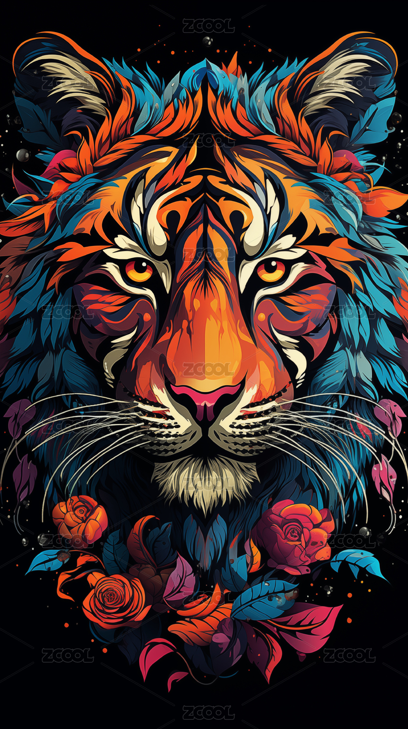 金色国潮十二生肖虎传统装饰纹样卡通形象