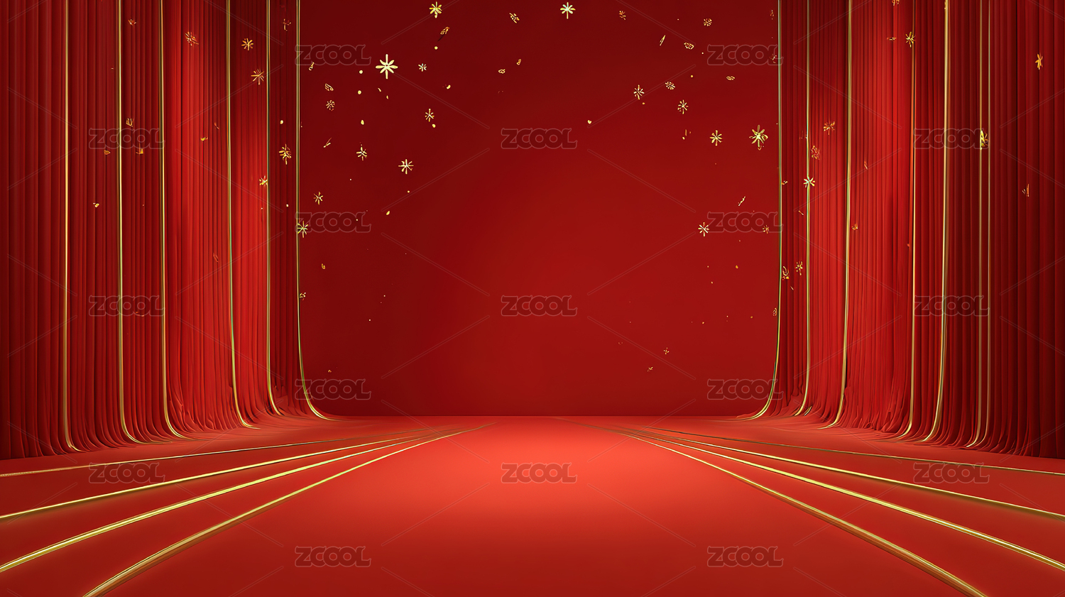 3D红色喜庆风撒着金色纸屑的电商产品展台