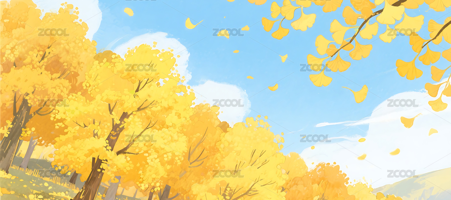 秋天晕染银杏树叶插画背景