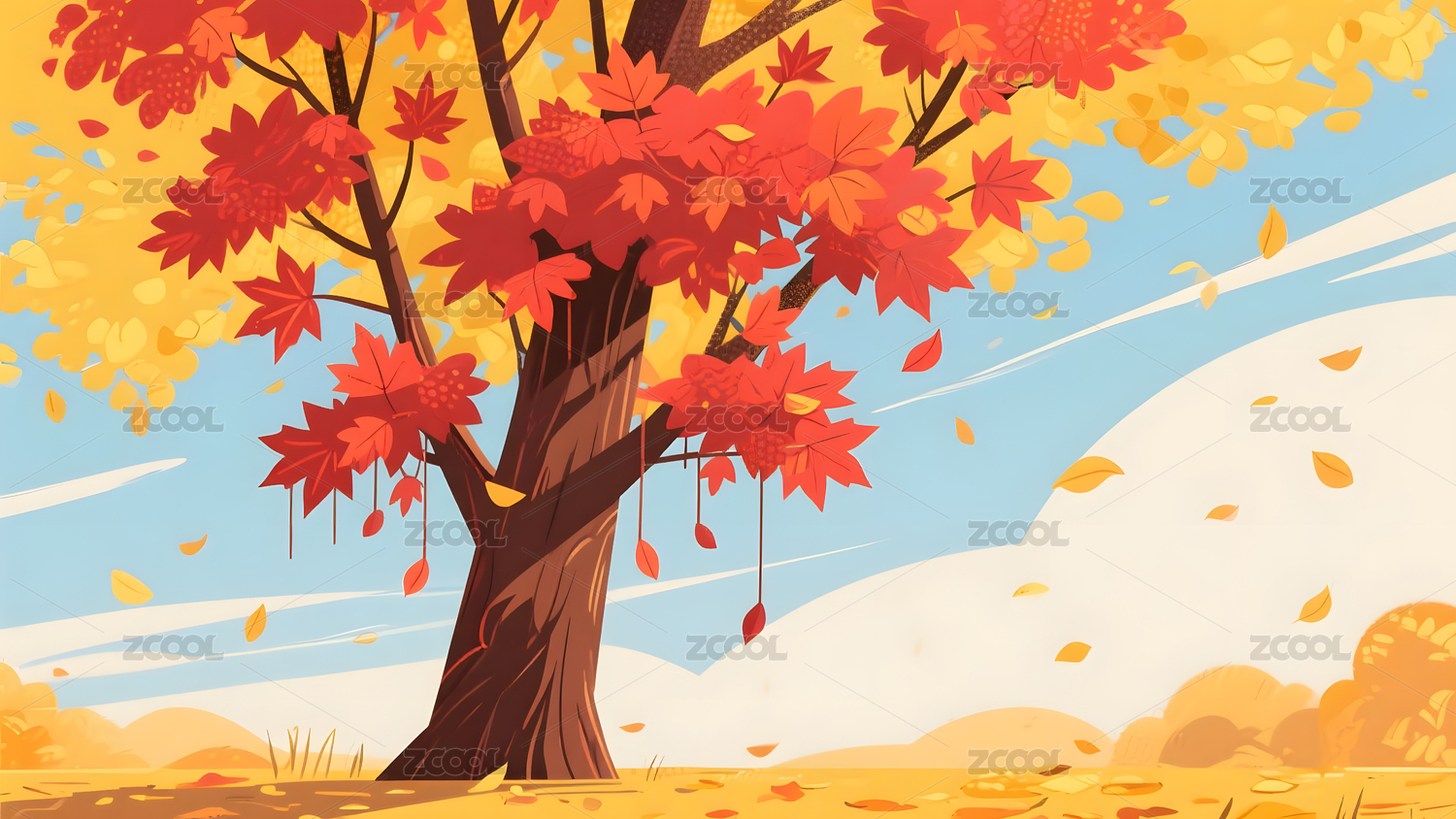 秋日红枫插画