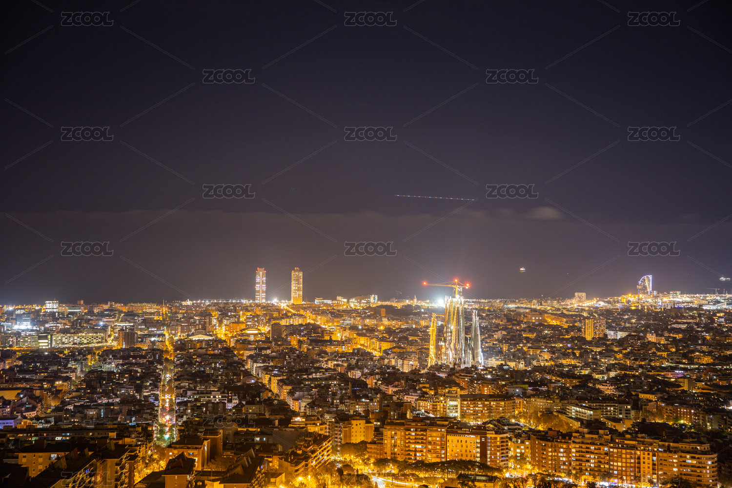 西班牙巴塞罗那-焦糖山俯瞰城市夜景