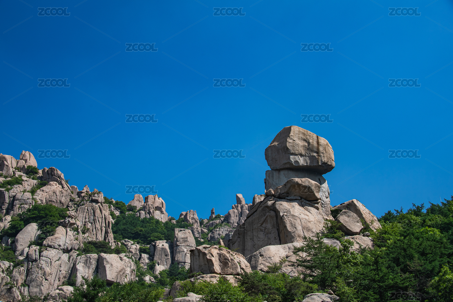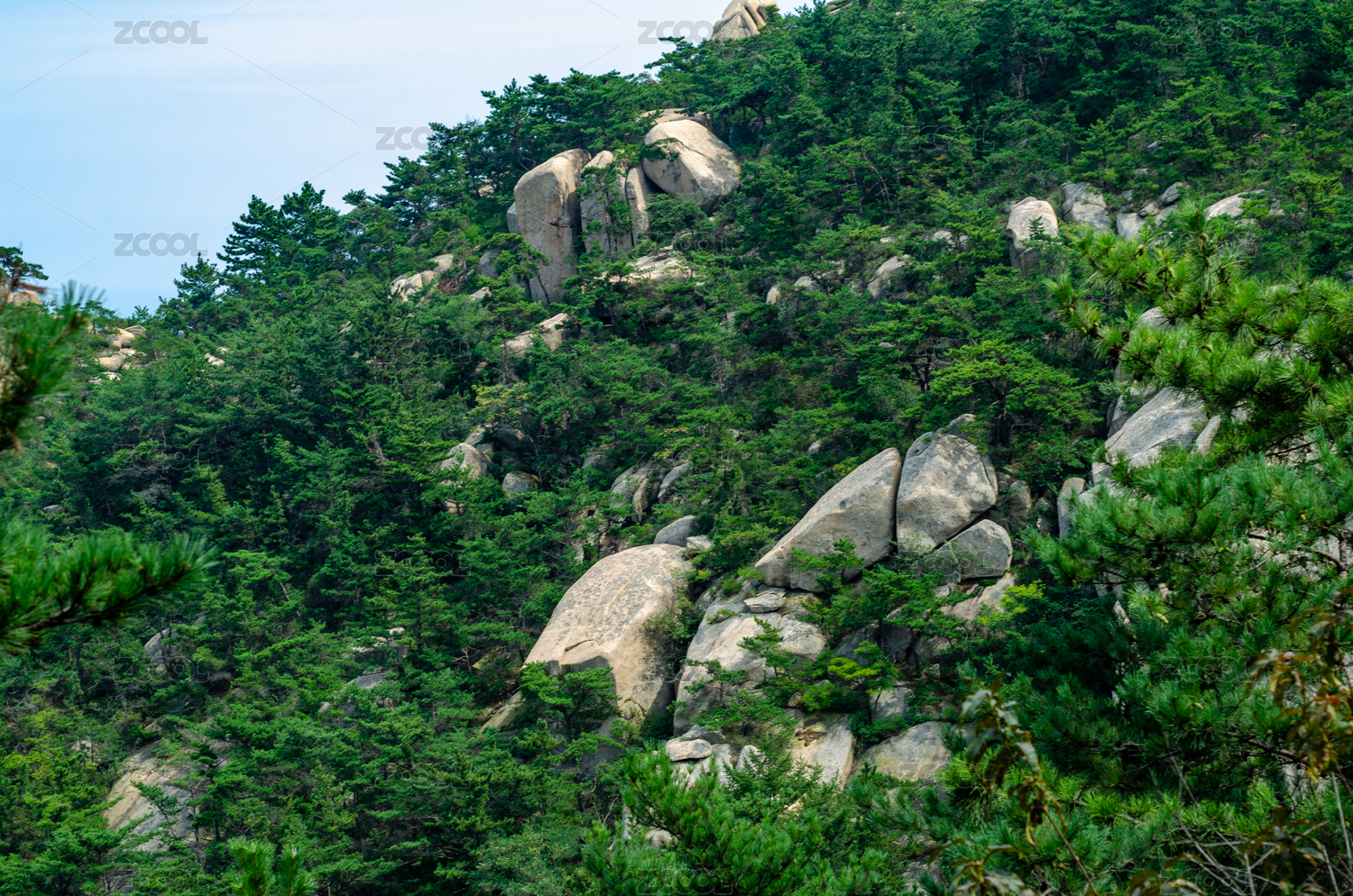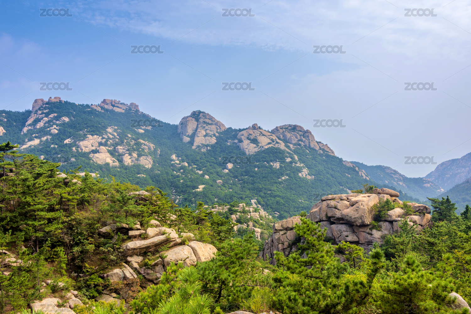 中国山东青岛崂山仰口风景区蜿蜒起伏的山峰