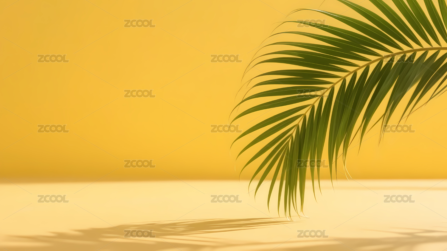 棕榈叶黄色背景阴影
