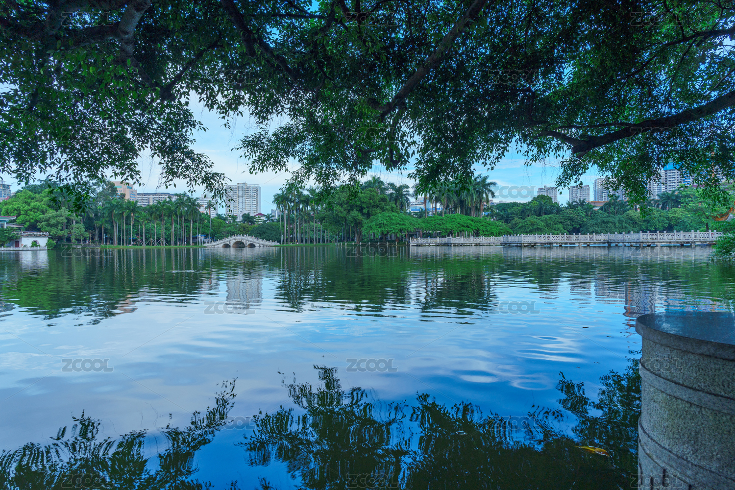 佛山千灯湖南海活水公园落羽杉与城市建筑