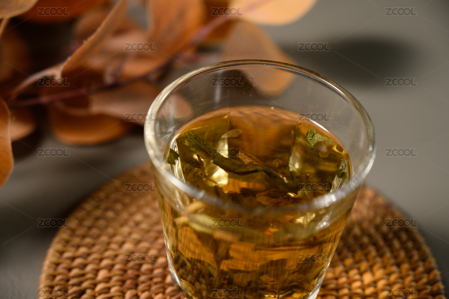 桌面上的杯子里的甘甜可口的秦皮茶