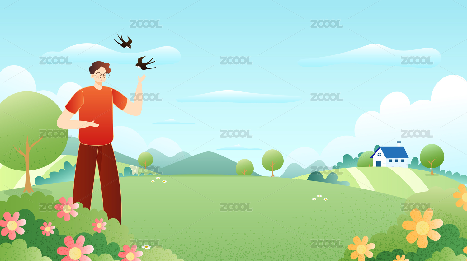 卡通春季春天立春节气节日户外郊游矢量渐变