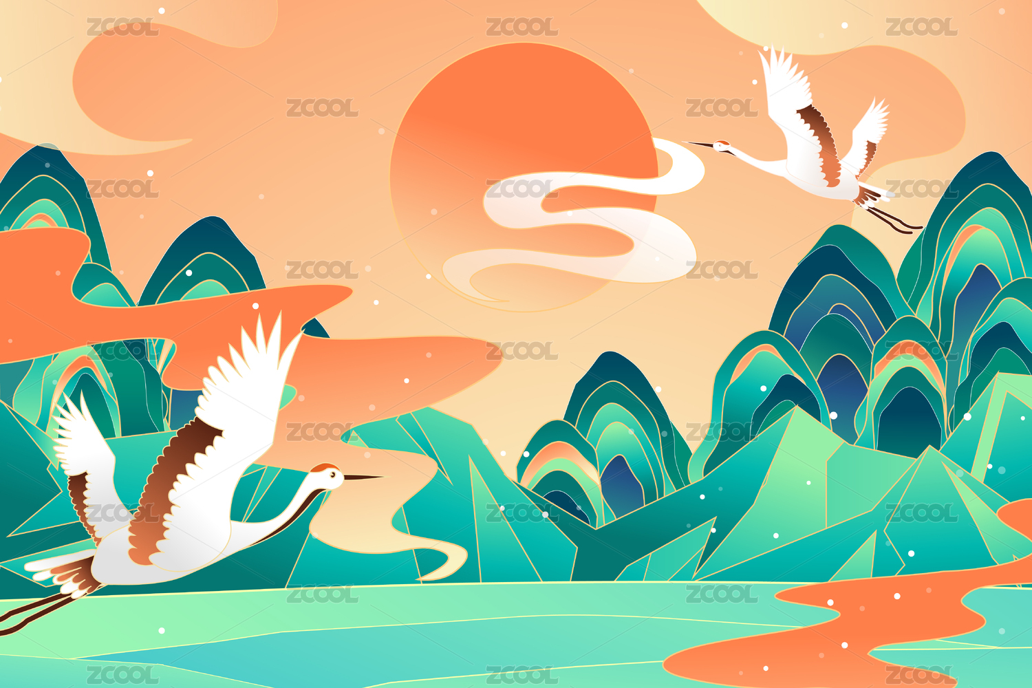 国潮建筑插画中国风黄鹤楼城市地标活动海报