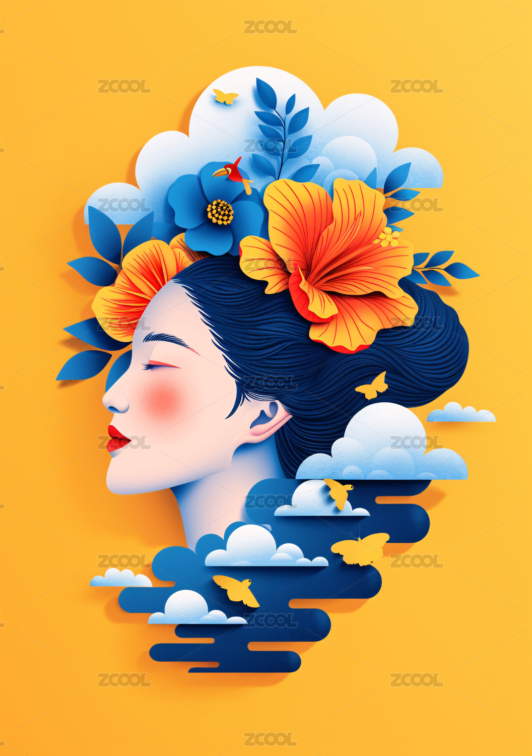 妇女节,花朵,美女,女神节,女人,插画,节日,女性,粉色,美丽