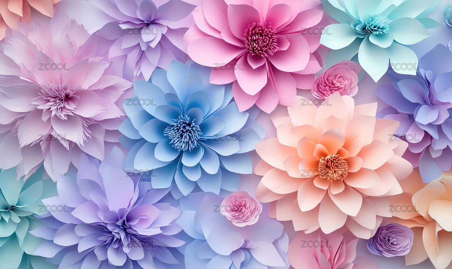 彩色剪纸艺术花卉花朵背景插画