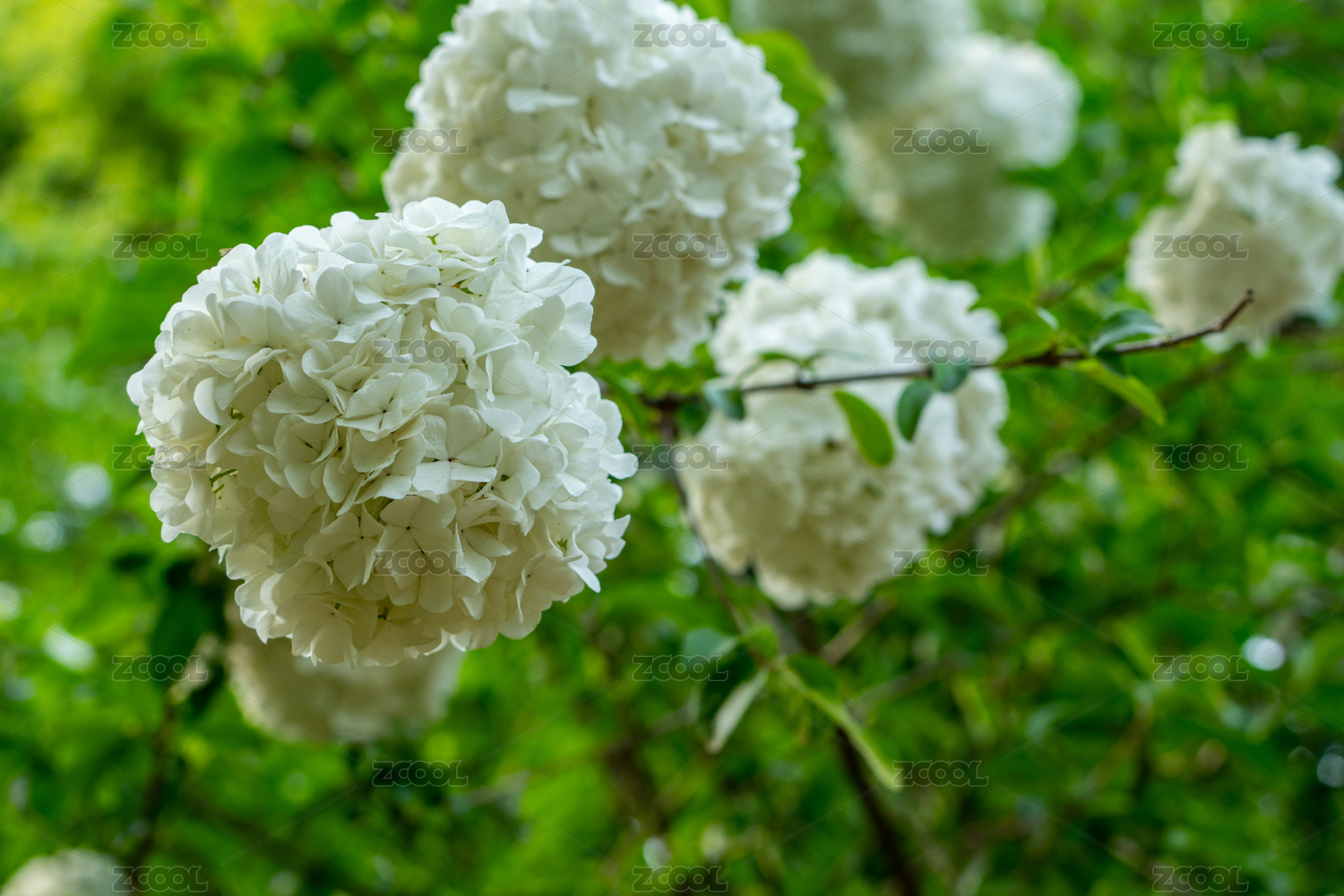 春天公园里盛开的绣球花,白色绣球荚蒾