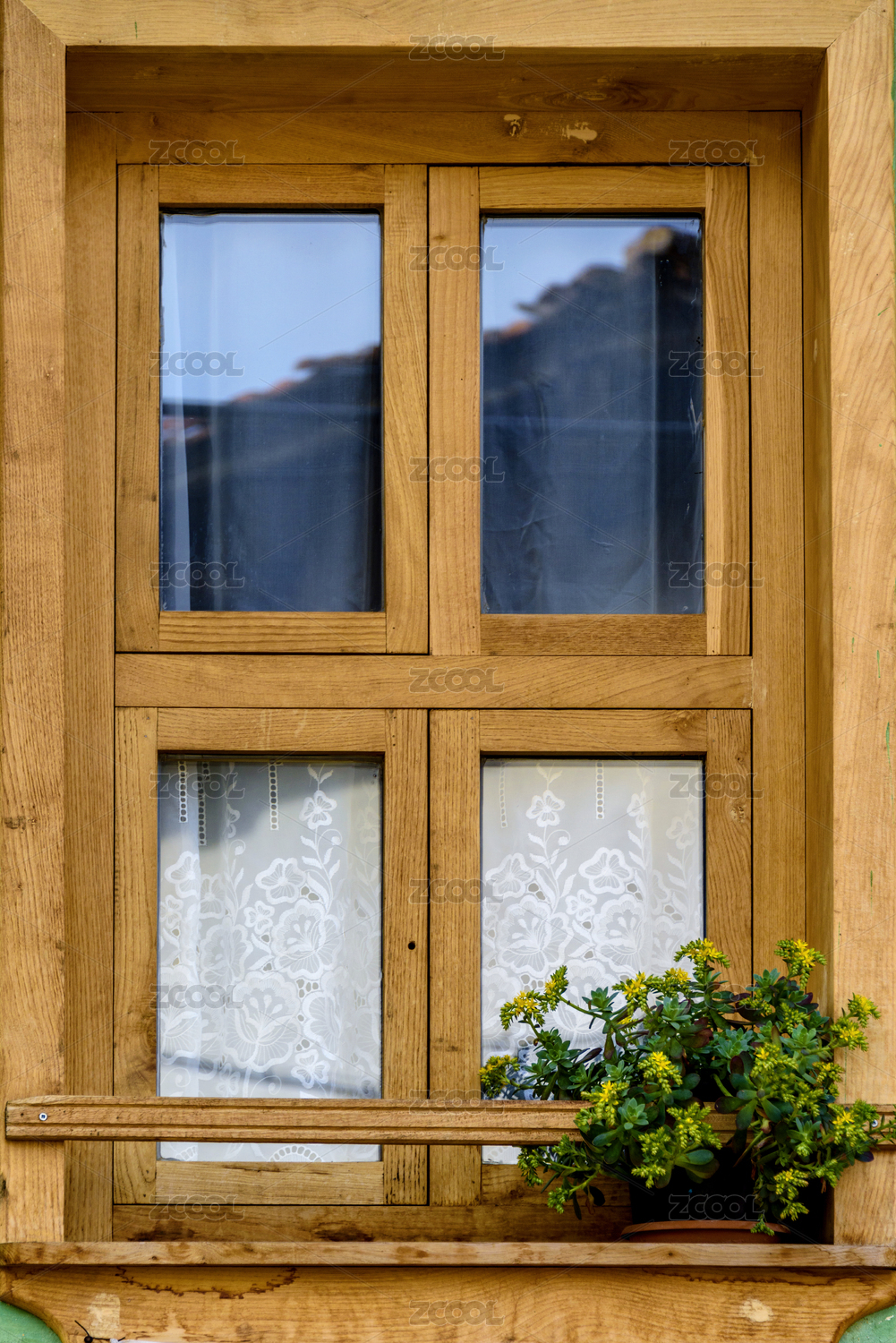 土耳其布尔萨朱马勒克兹克小镇的木窗