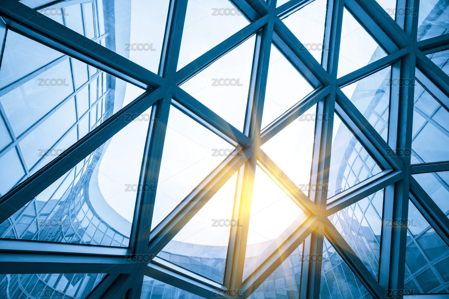 仰视钢结构建筑和现代建筑玻璃幕墙
