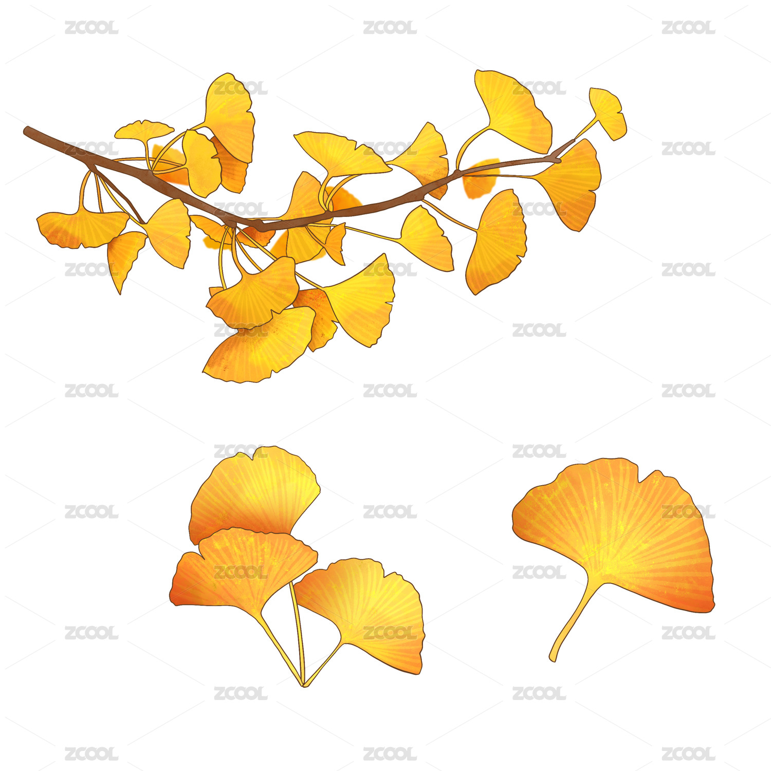 银杏叶插画元素
